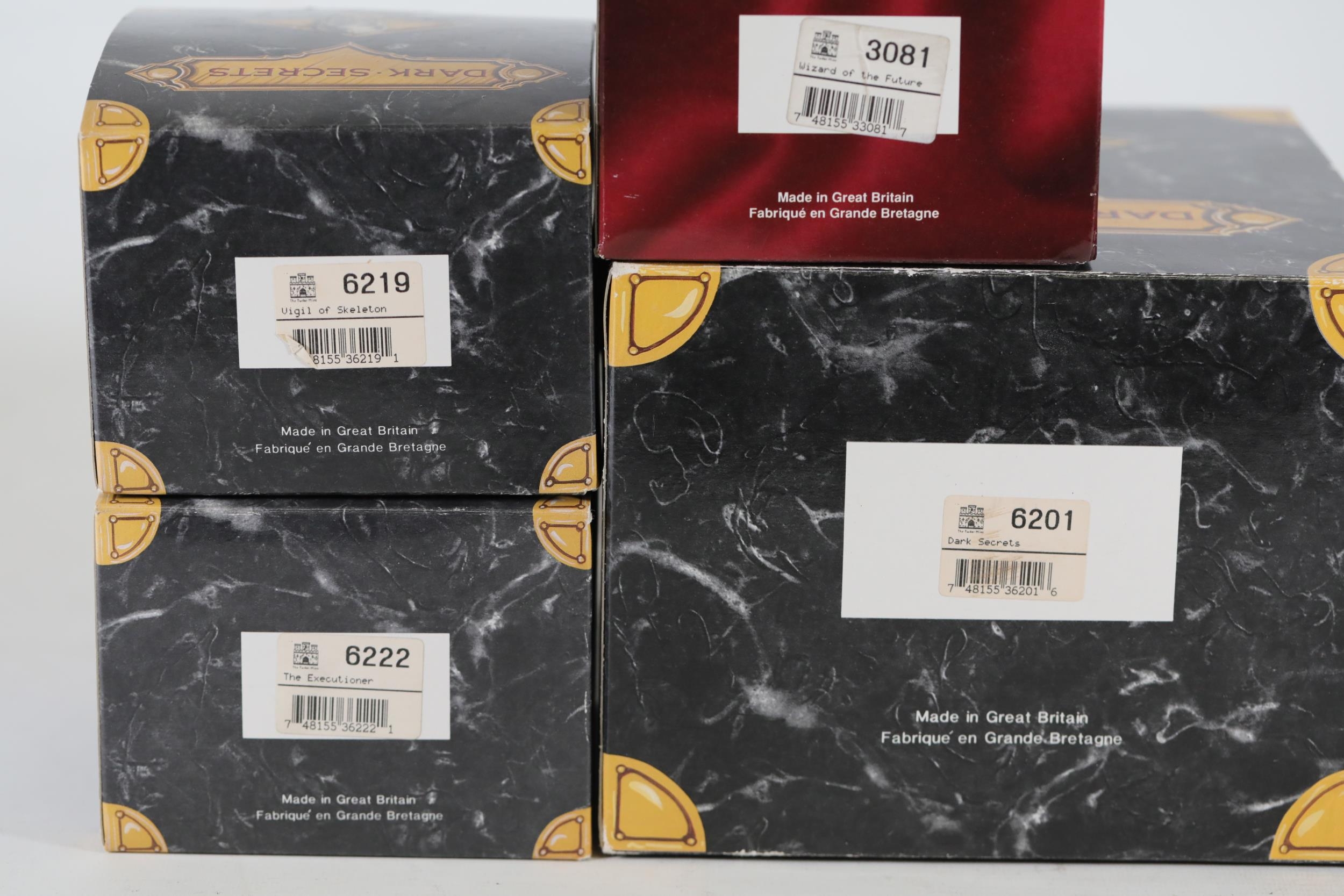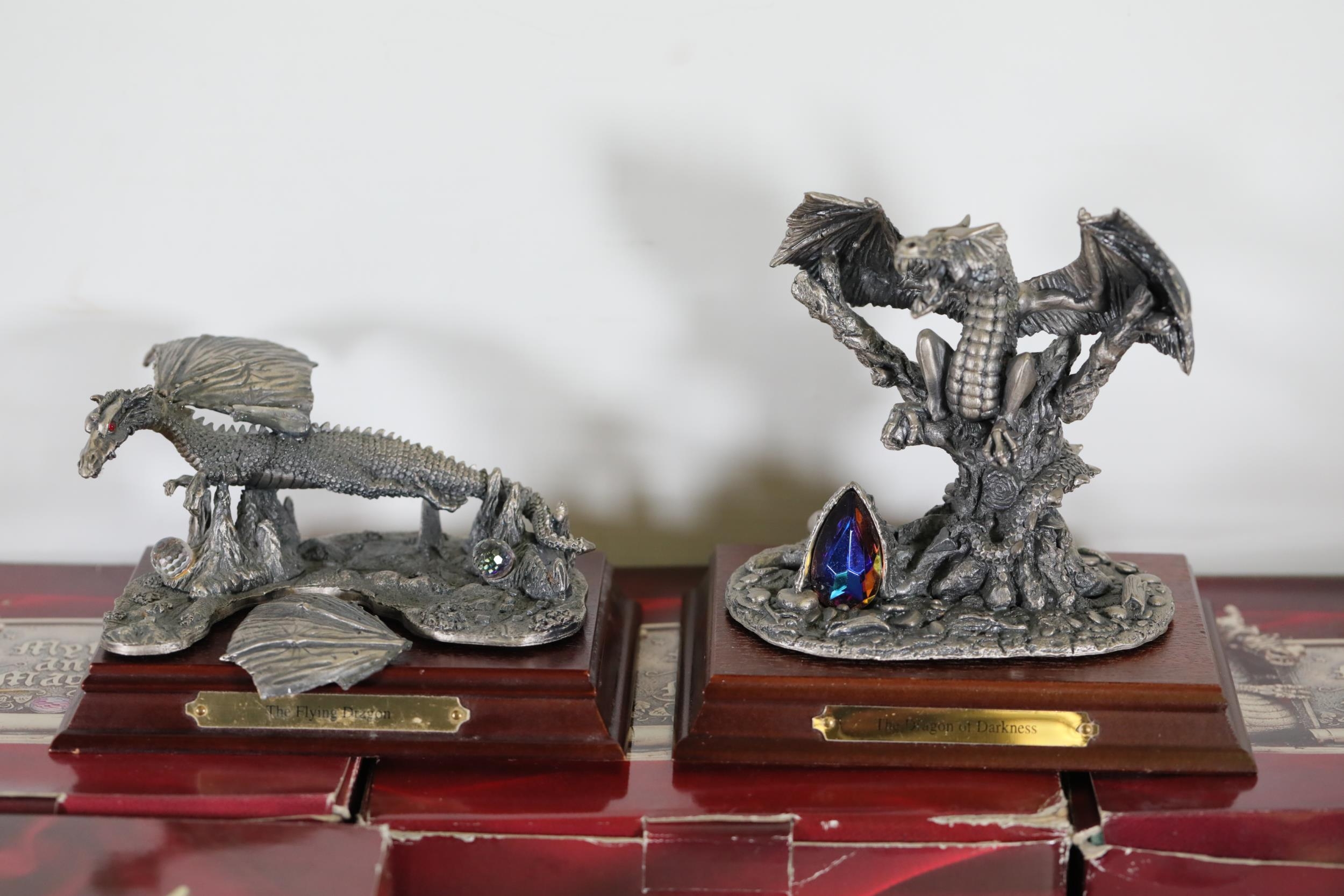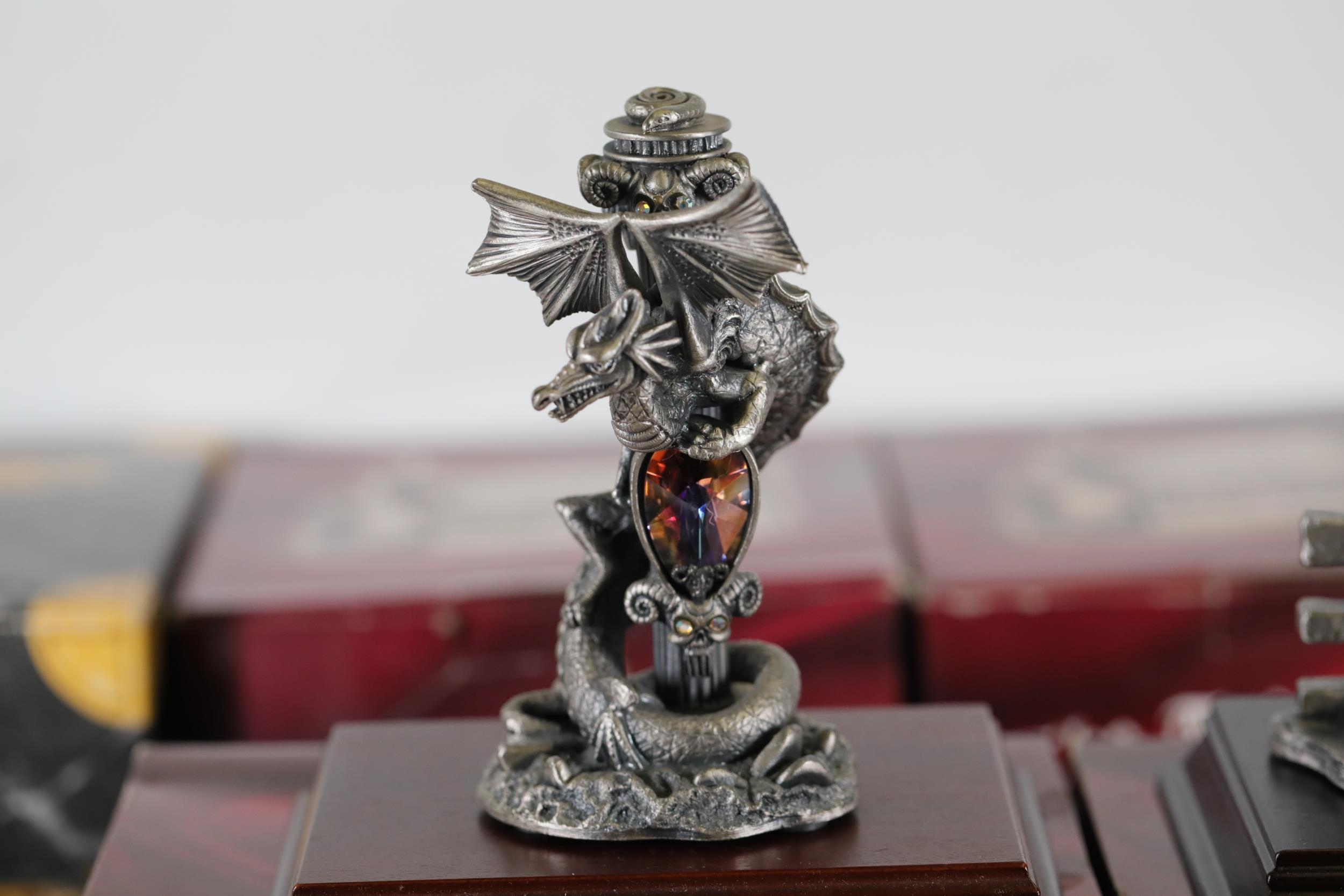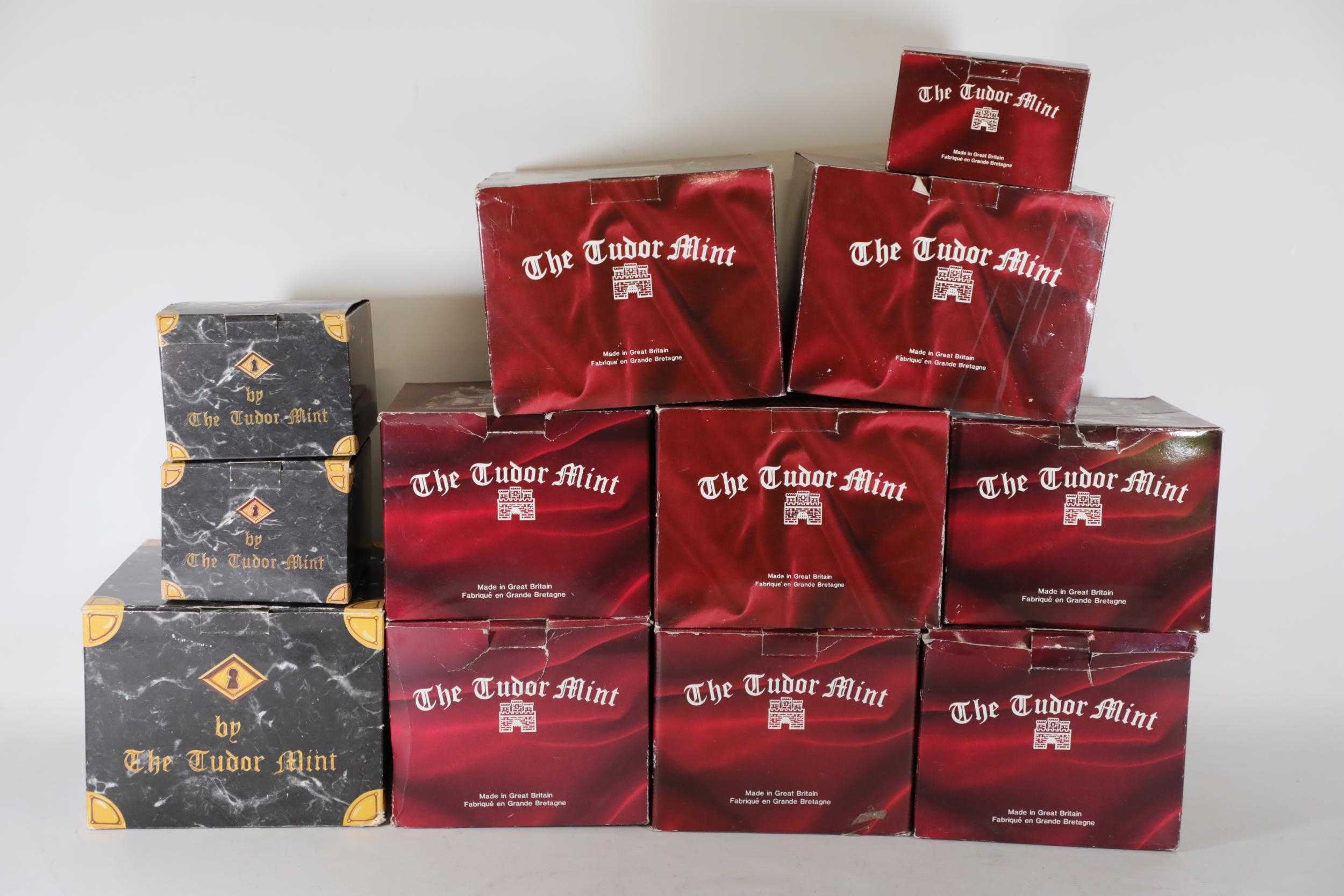 Collection of 12 Tudor Mint Boxed items: 9 Myth and Magic, 3 Dark Secrets, including "The Flying Dragon" with damaged wing (0Y93, 3322, OY94, 3304, 3321, 9003, 3302, 3320, 6219, 3081, 6222, 6201).