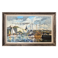ATTRIBUTED TO THE HAT (ELUSIVE SUFFOLK ARTIST). UNTITILED. oil on board, 43cm x 53cm, framed.