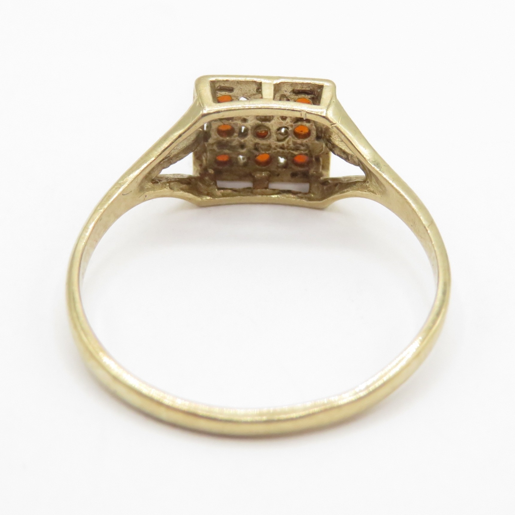 9ct gold orange gemstone cluster ring (1.2g) Size M