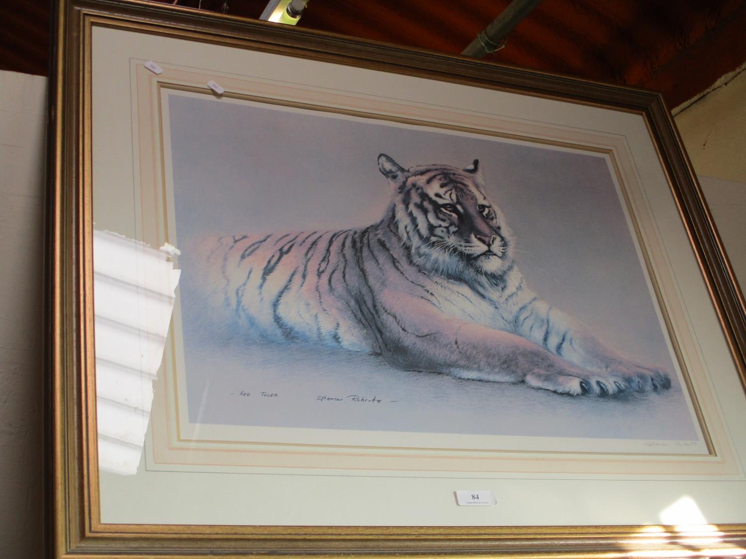 A large framed print of a Red Tiger by Spencer Roberts signed in the mount in pencil