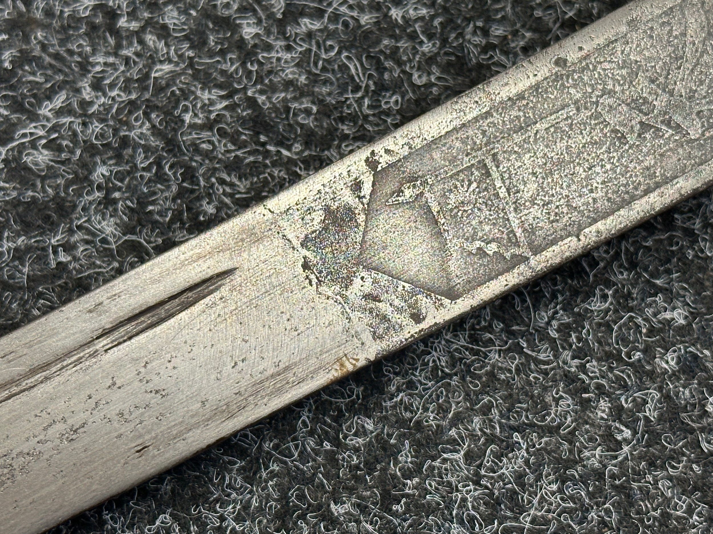 Blade has some finger marks and very small nicks to cutting edge.