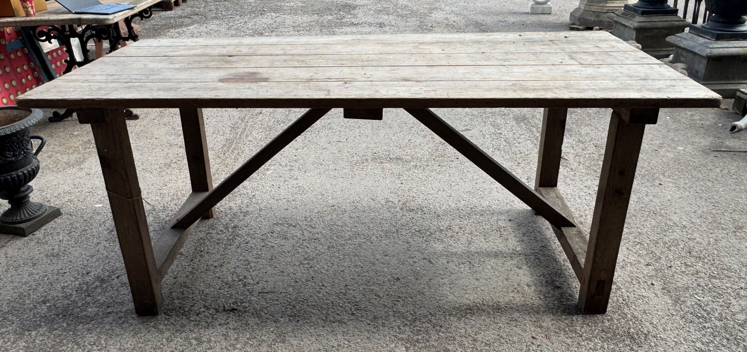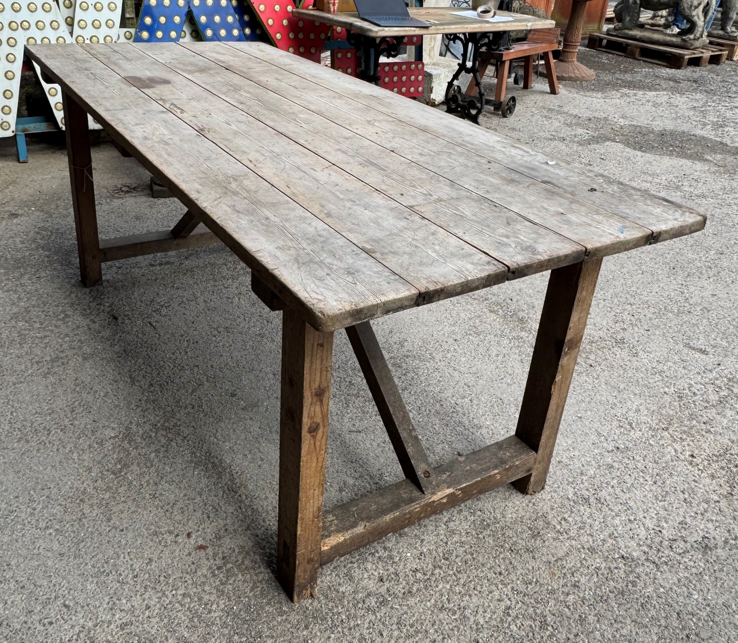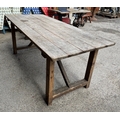 Vintage pine trestle table with planked top, H 75cm x W 184cm