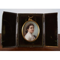 of sarcophagus form, the coffered lid opening to a fitted interior. 20 cm. high; 34 cm. wide; 20 cm. deep