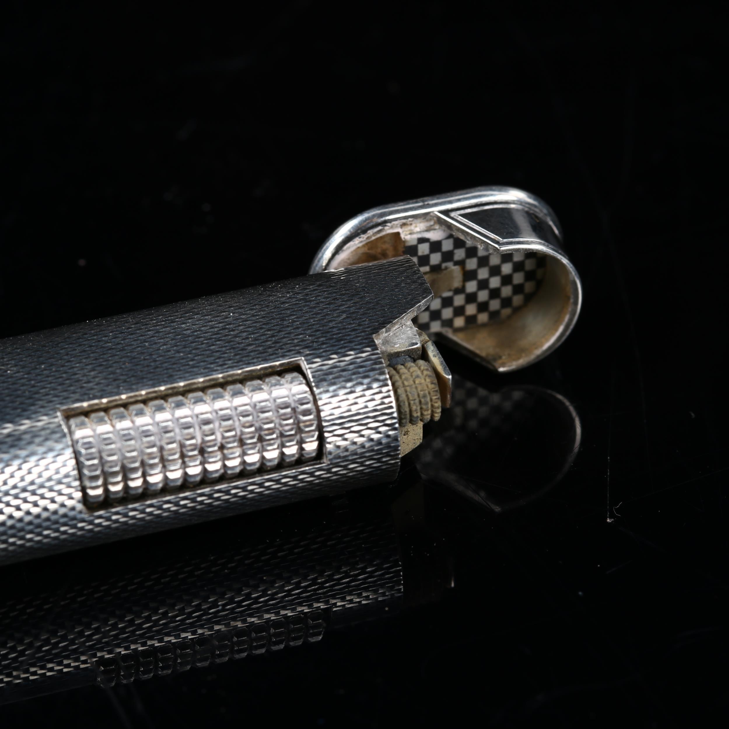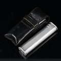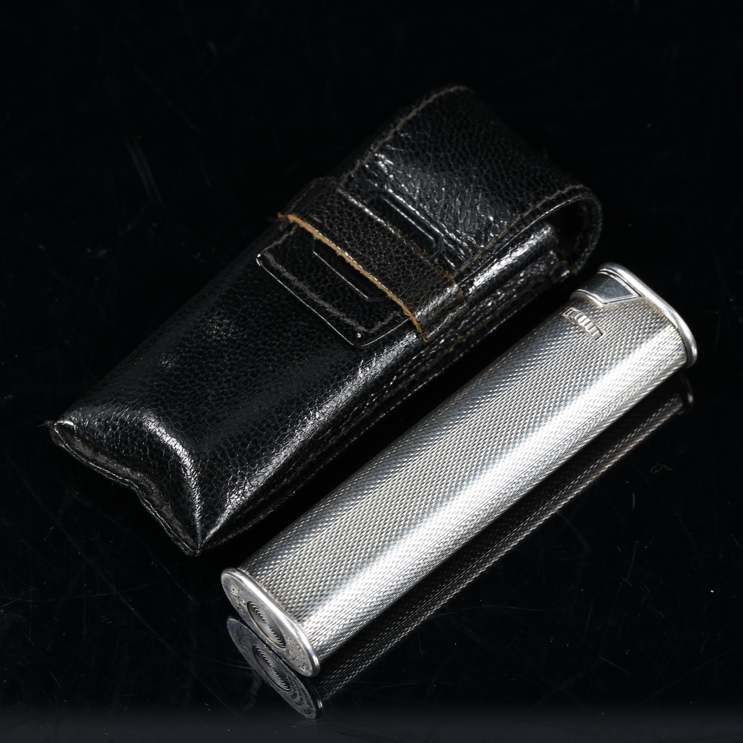 A Dunhill silver plated pocket lighter in leather case, length 7cm