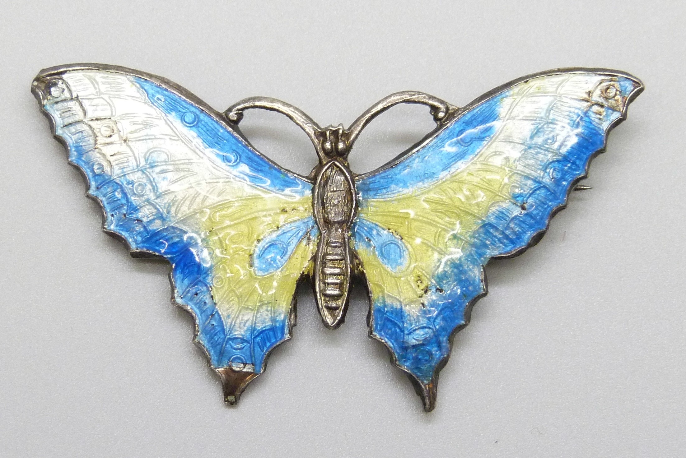 An early 20th Century silver and enamel insect brooch in the form of a butterfly, 5.3cm wingspan