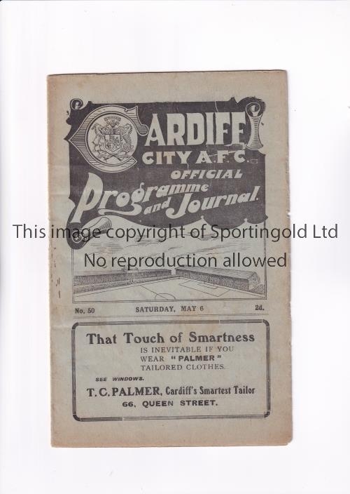 MANCHESTER UNITED Programme for the away League match v Cardiff City 6/5/1922, slightly ageing marks. Generally good