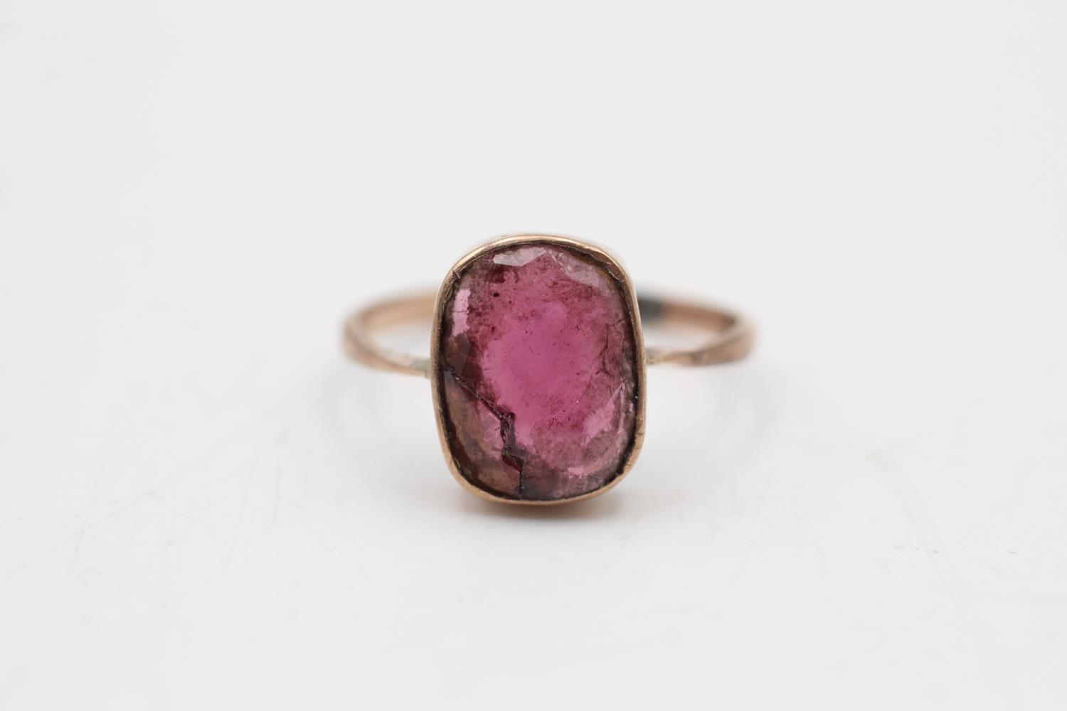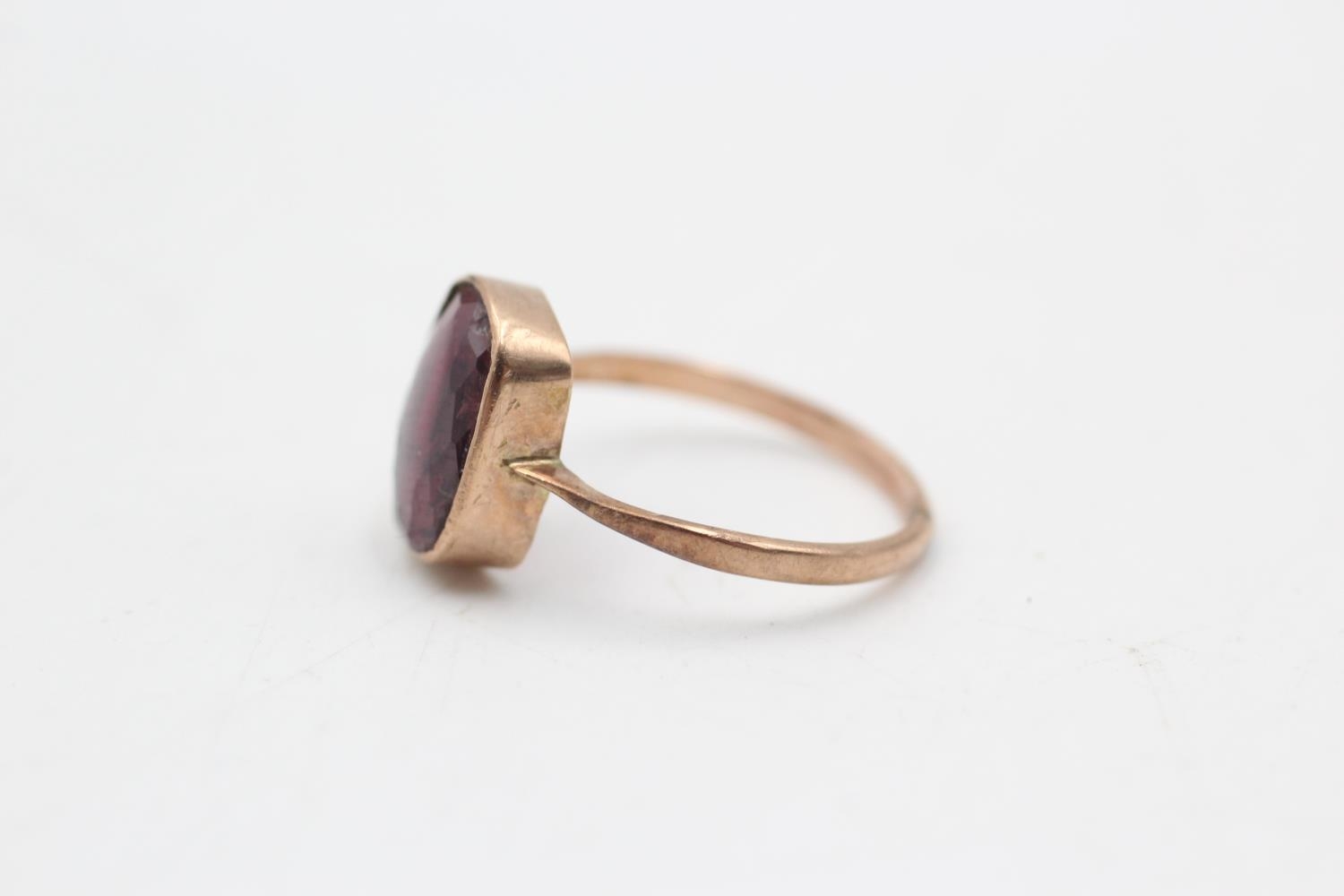 9ct gold antique garnet rub over setting ring. As seen. (1.7g) Size M