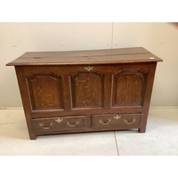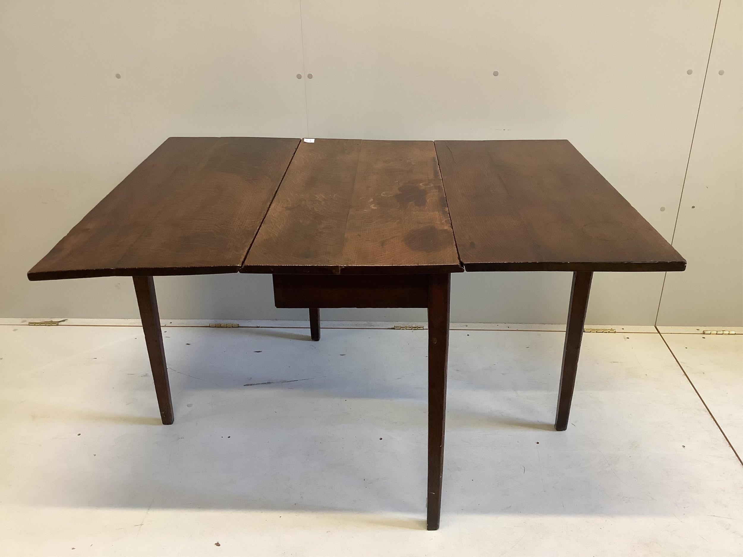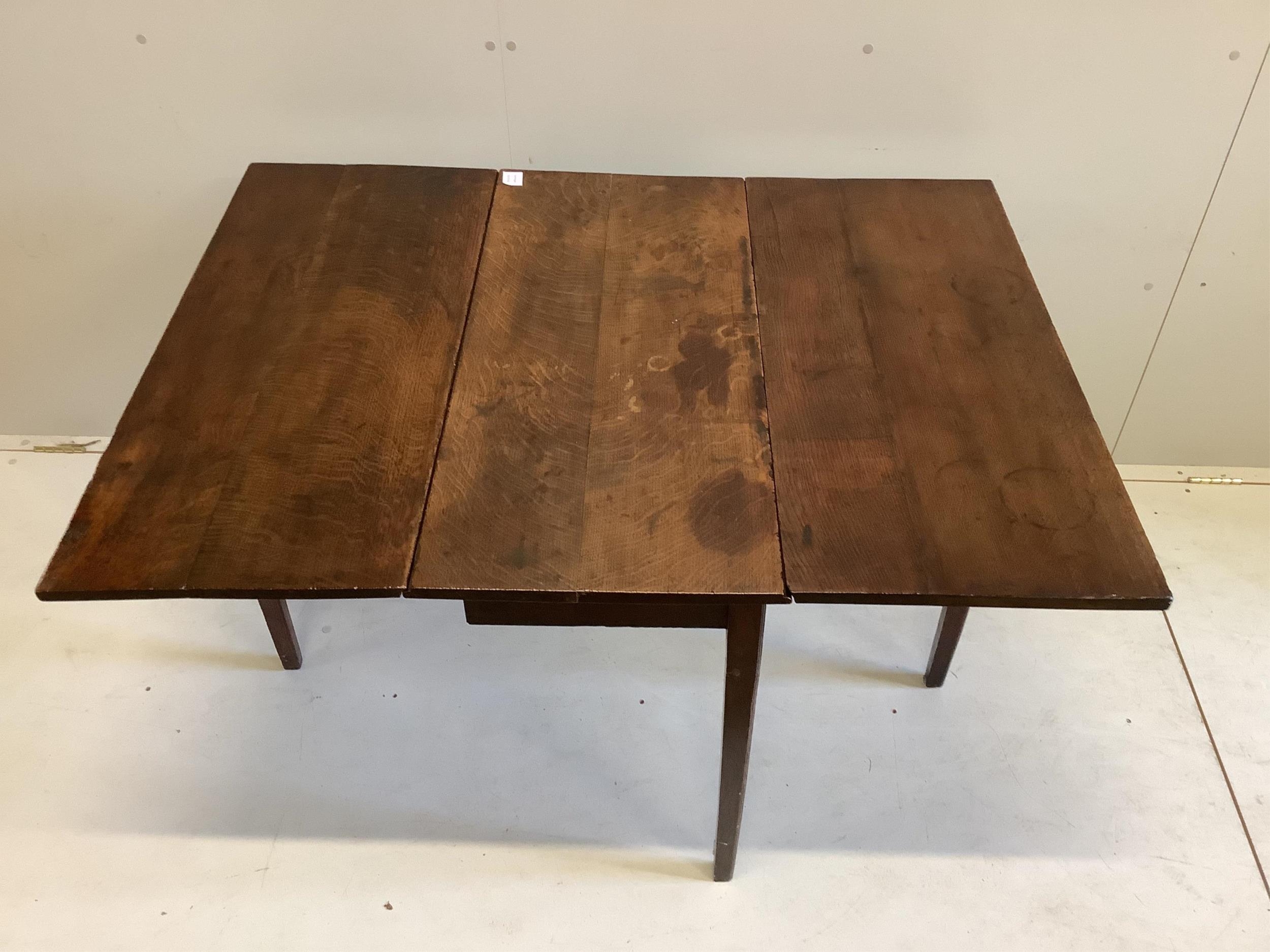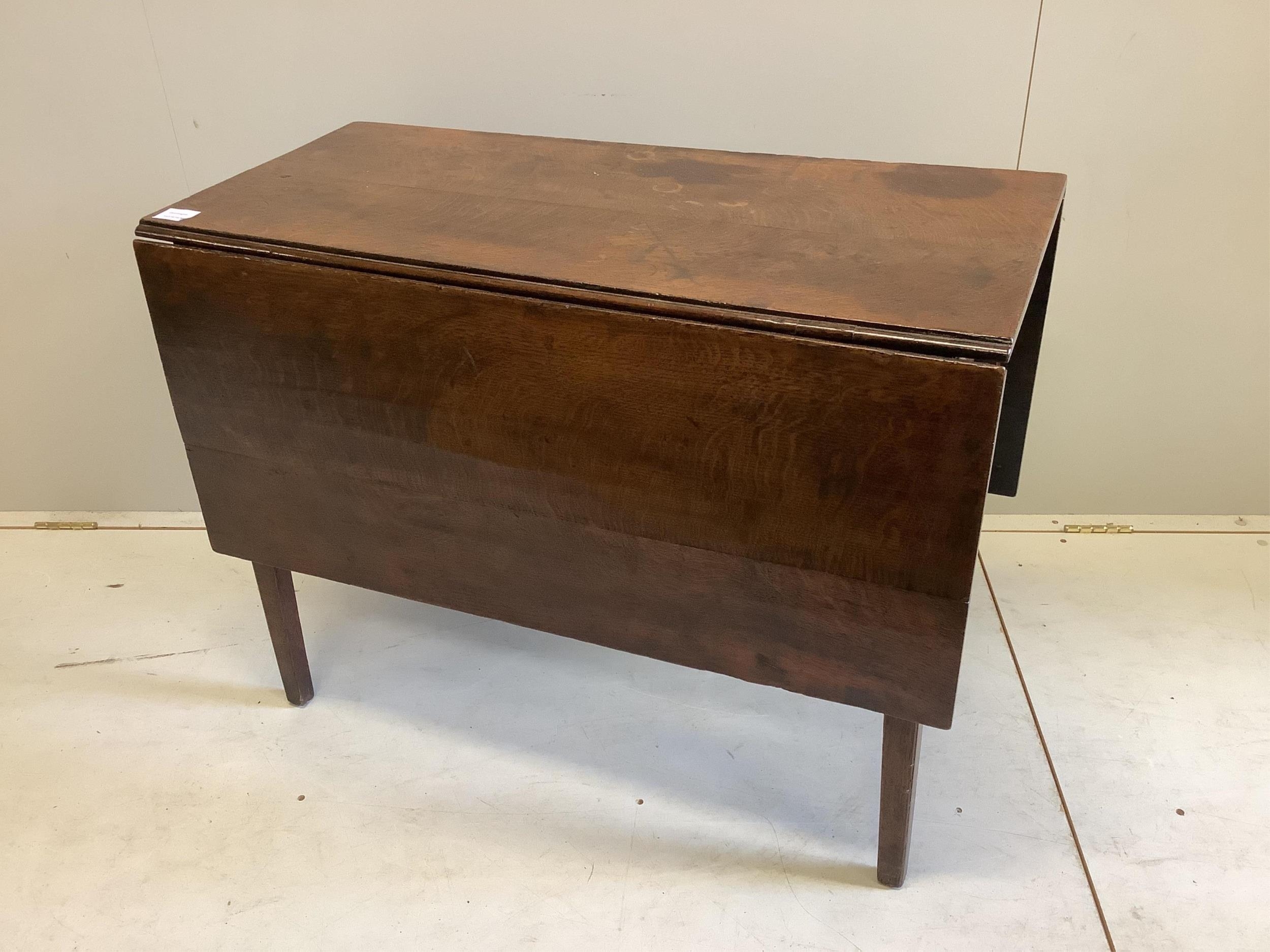 An 18th century Provincial oak drop leaf dining table, width 92cm, depth 44cm, height 72cm. Condition - fair