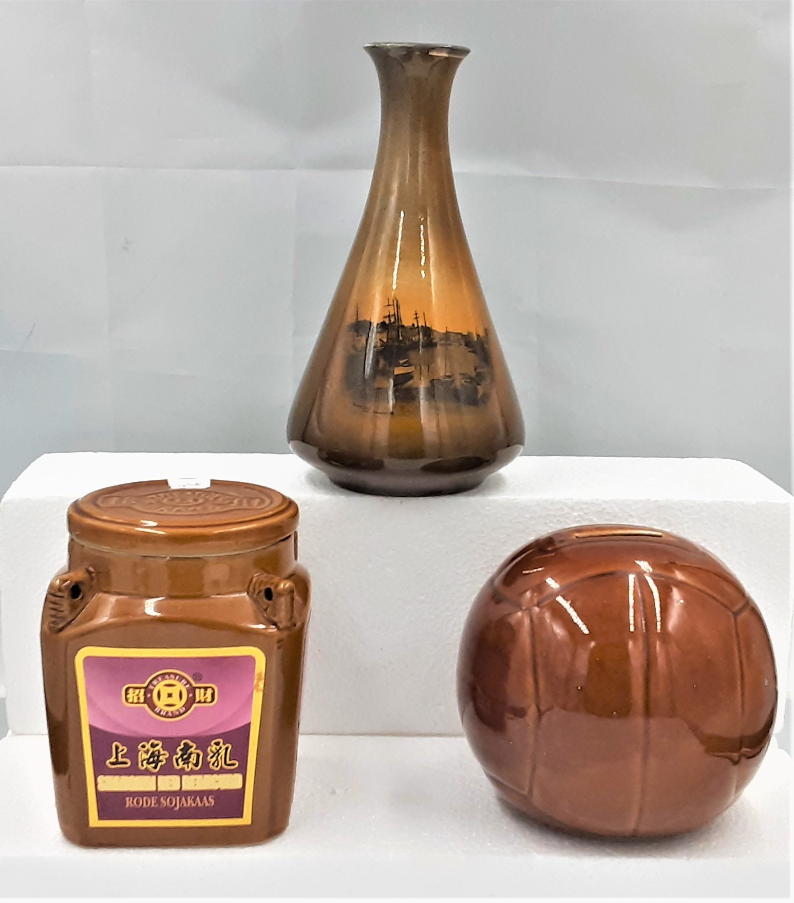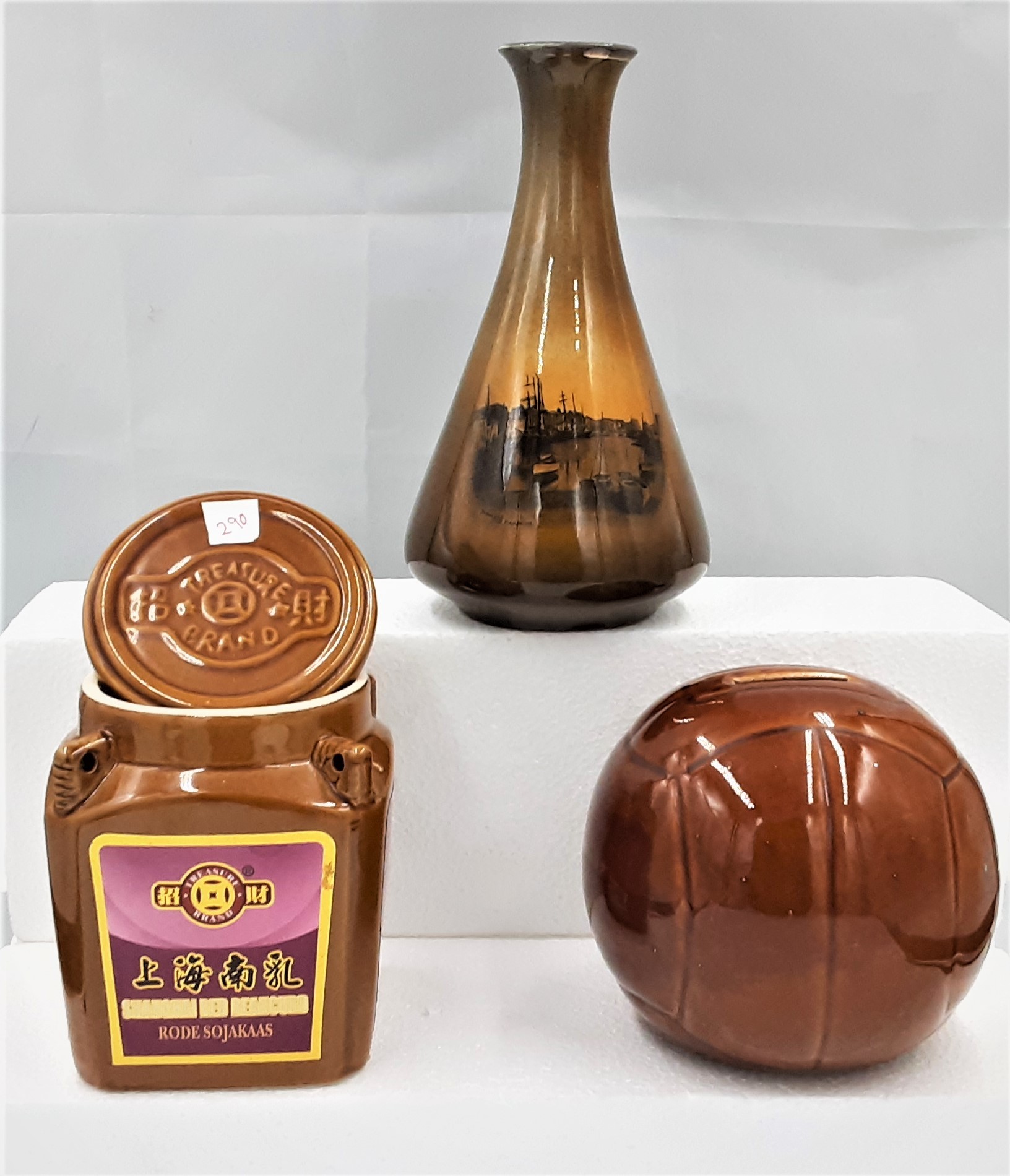 Ceramic Chinese Lidded Jar, Football Money Box & Vase