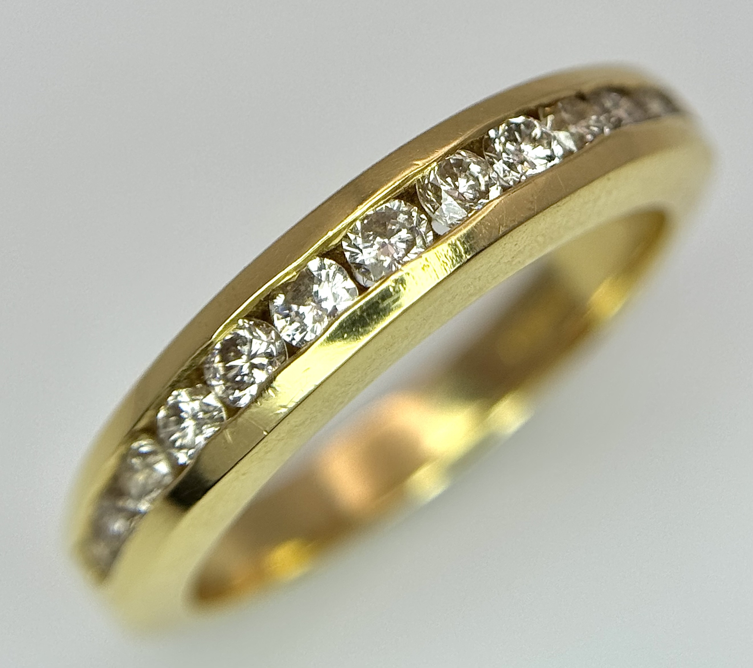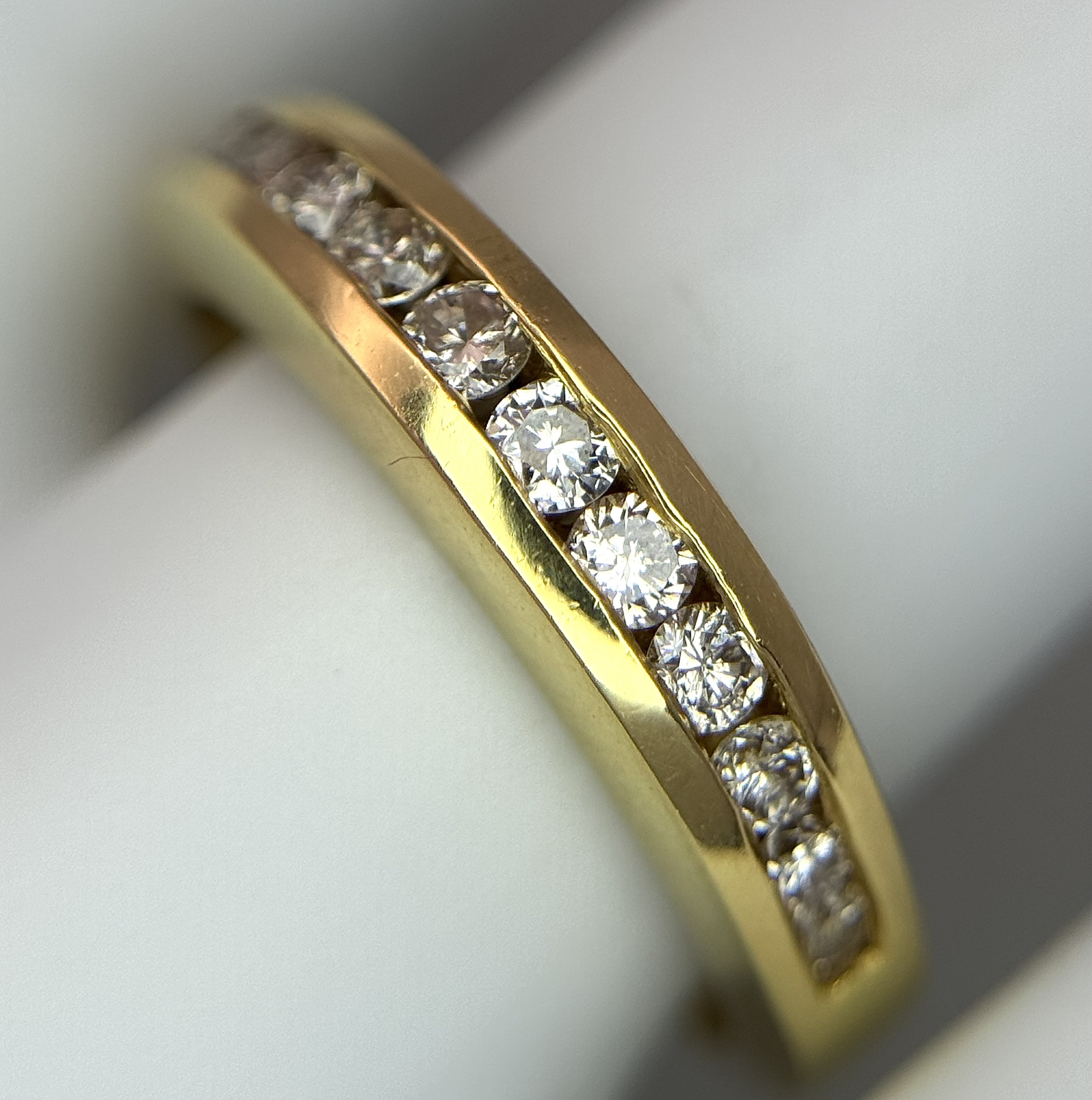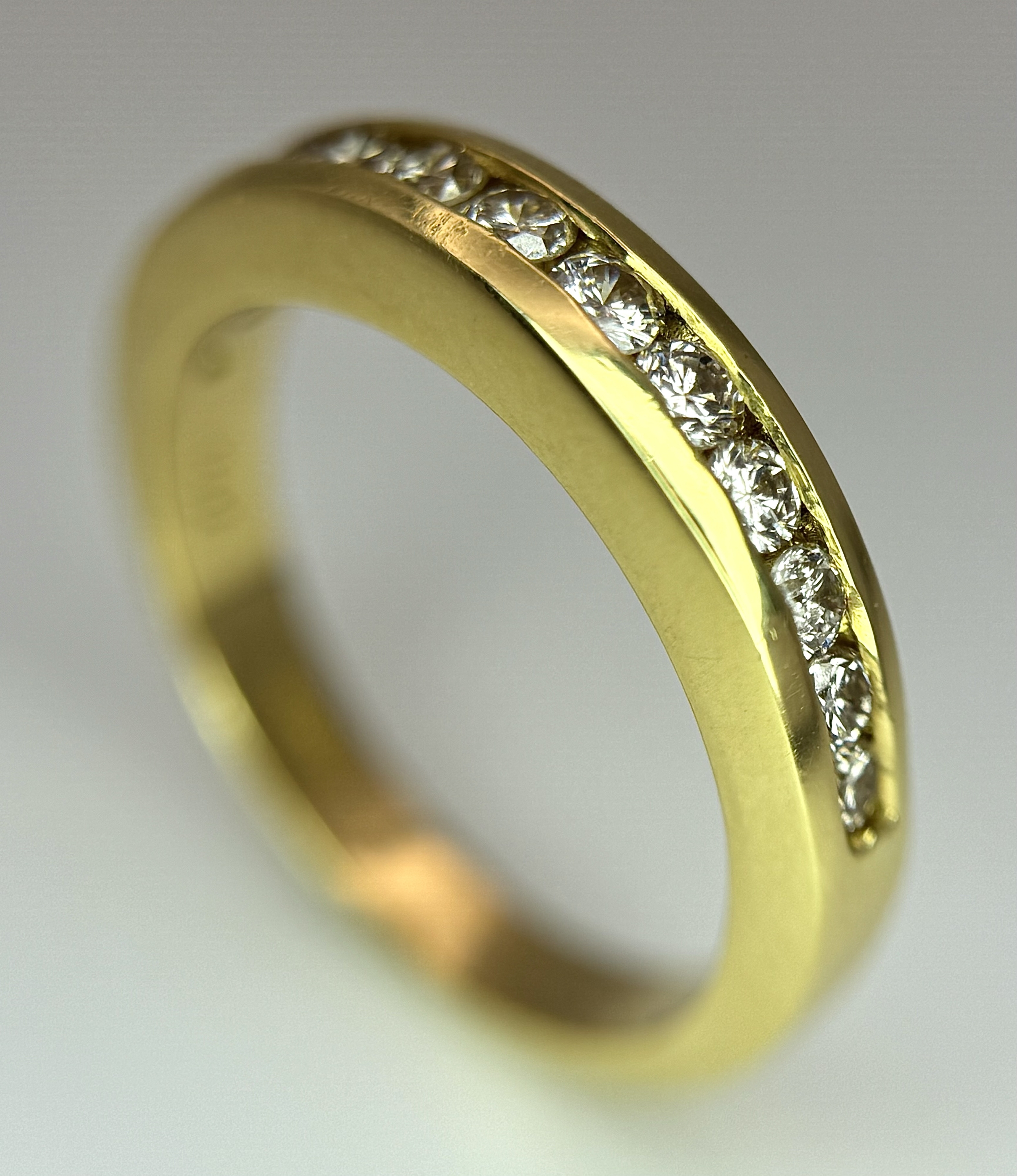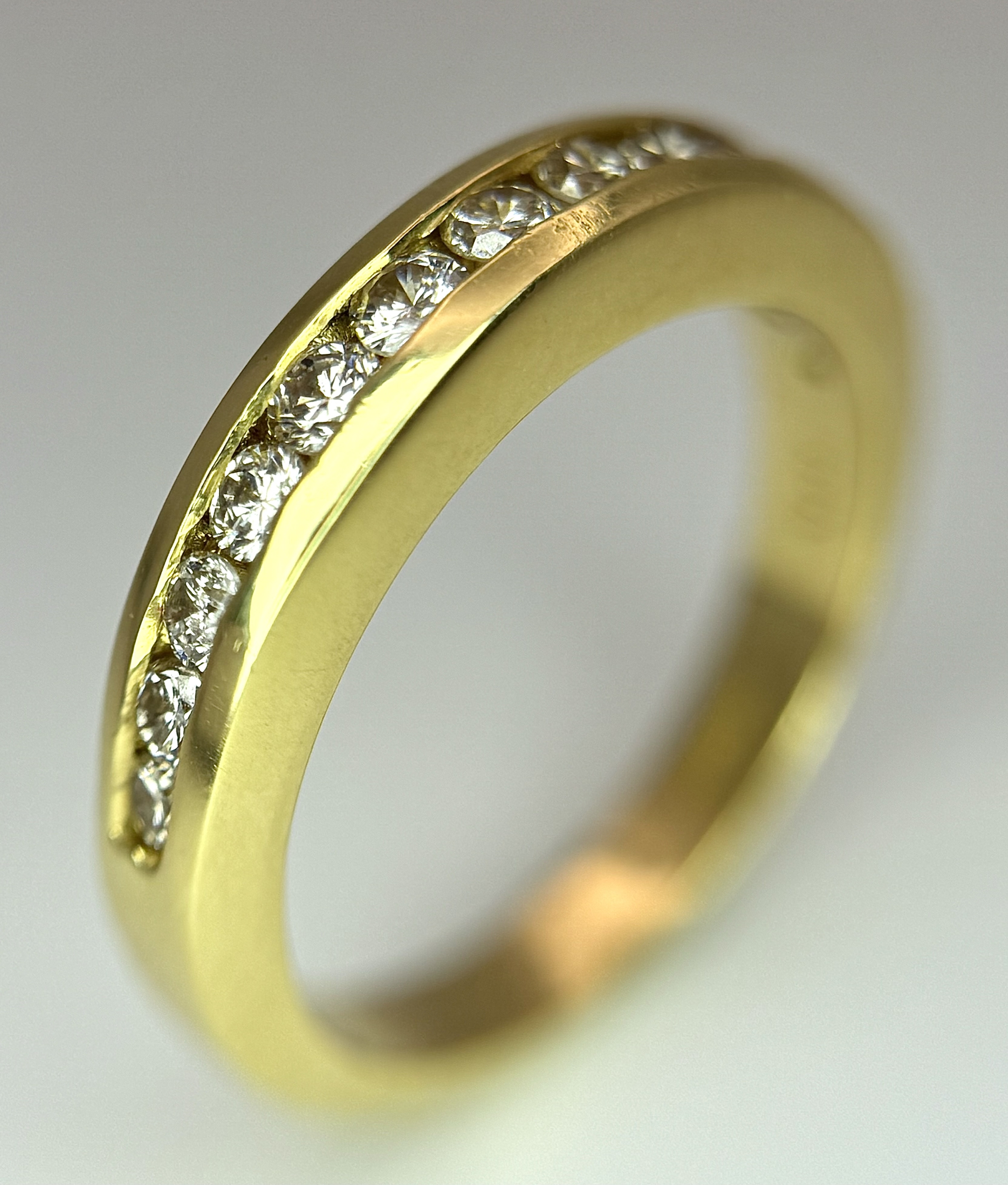 An 18K Yellow Gold, Diamond Channel Set Ring. 14 diamonds - 0.50ctw. Size N. 5.4g.