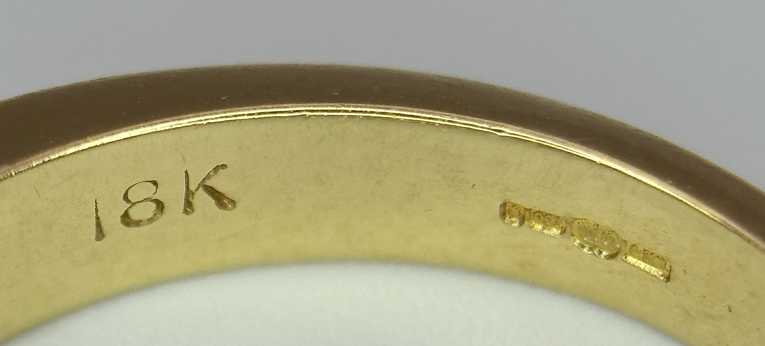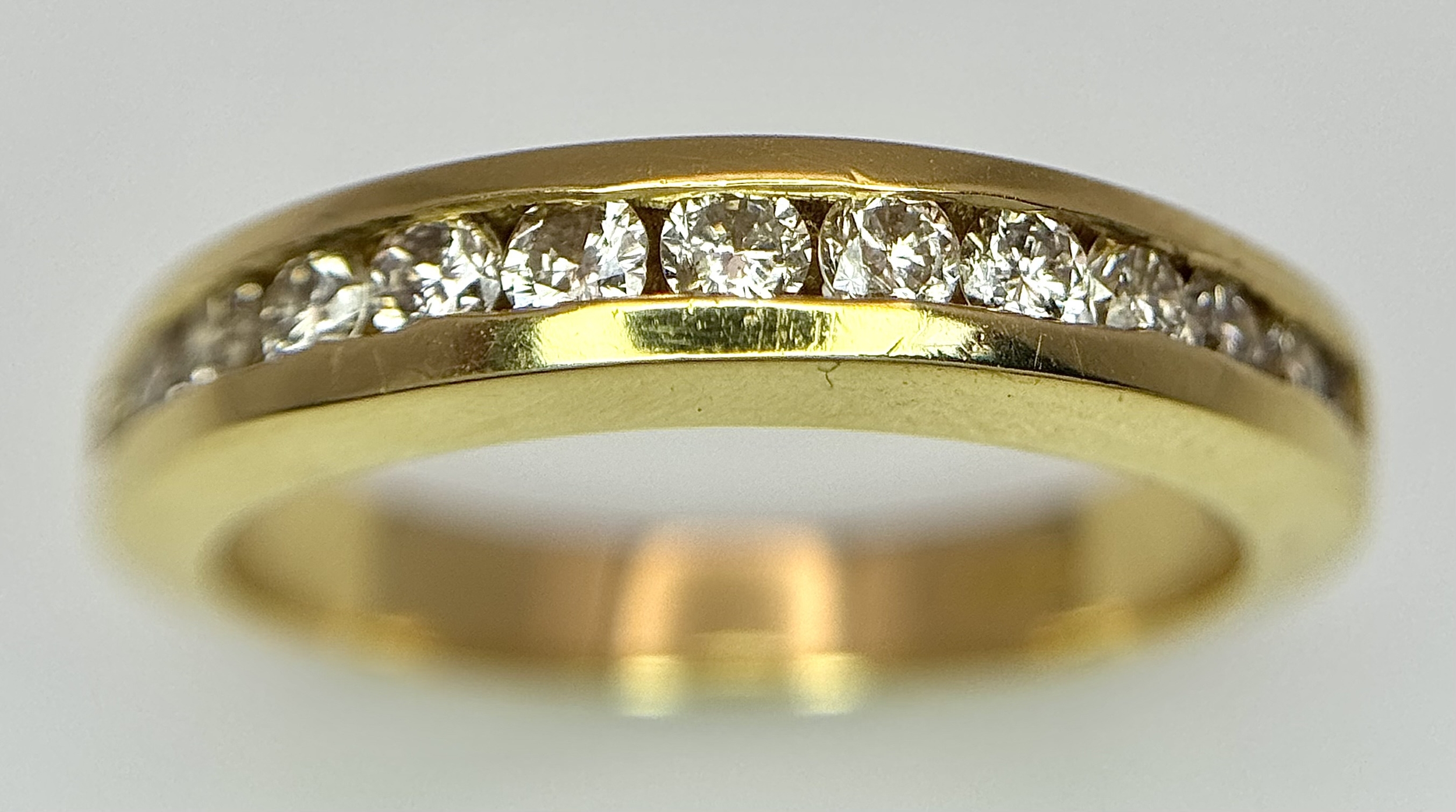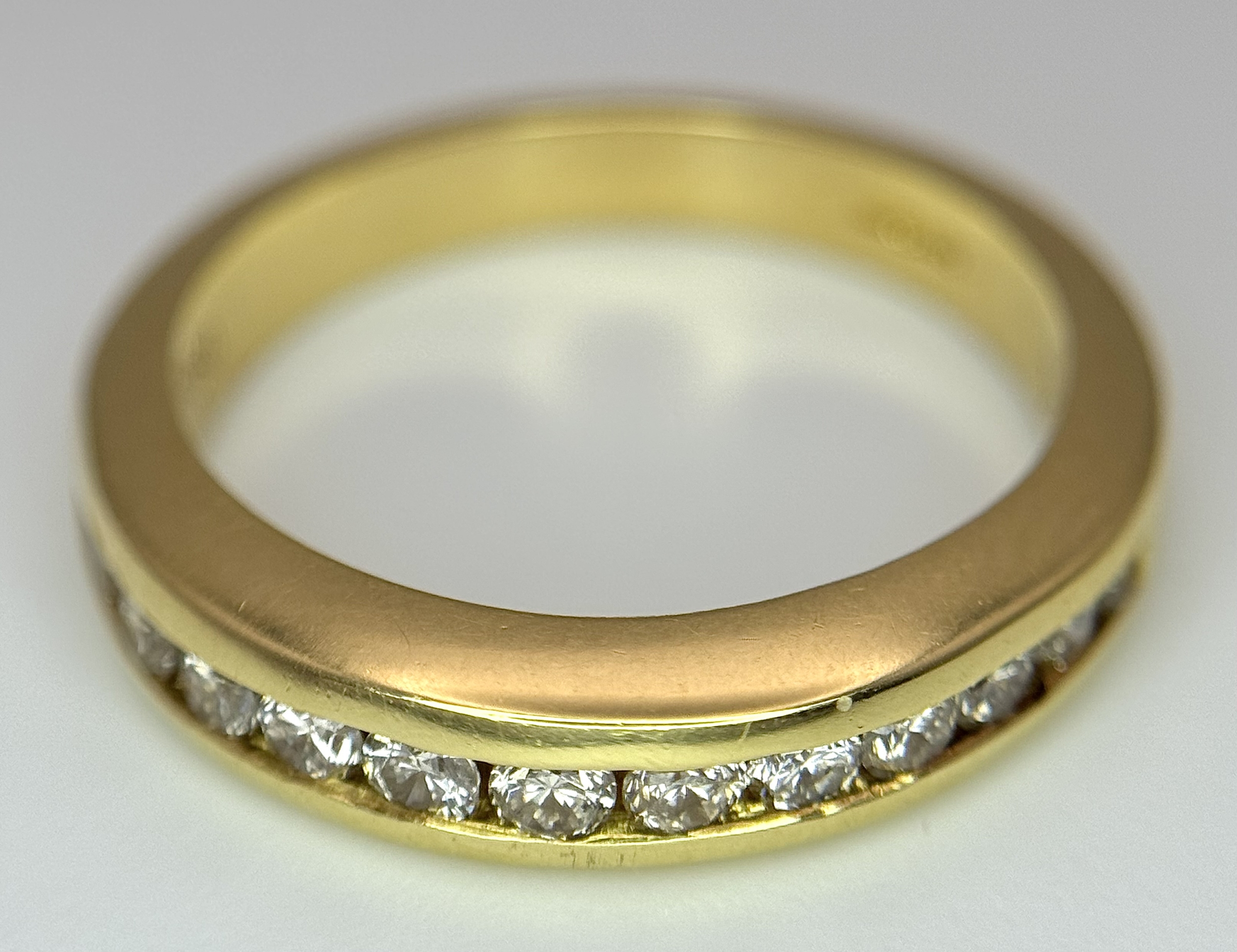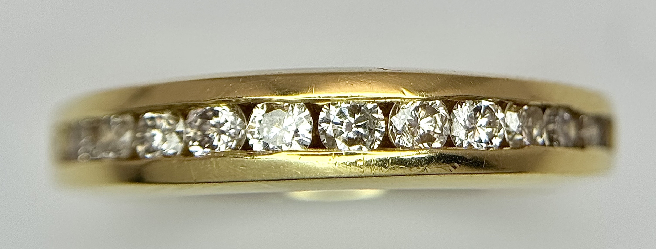 An 18K Yellow Gold, Diamond Channel Set Ring. 14 diamonds - 0.50ctw. Size N. 5.4g.