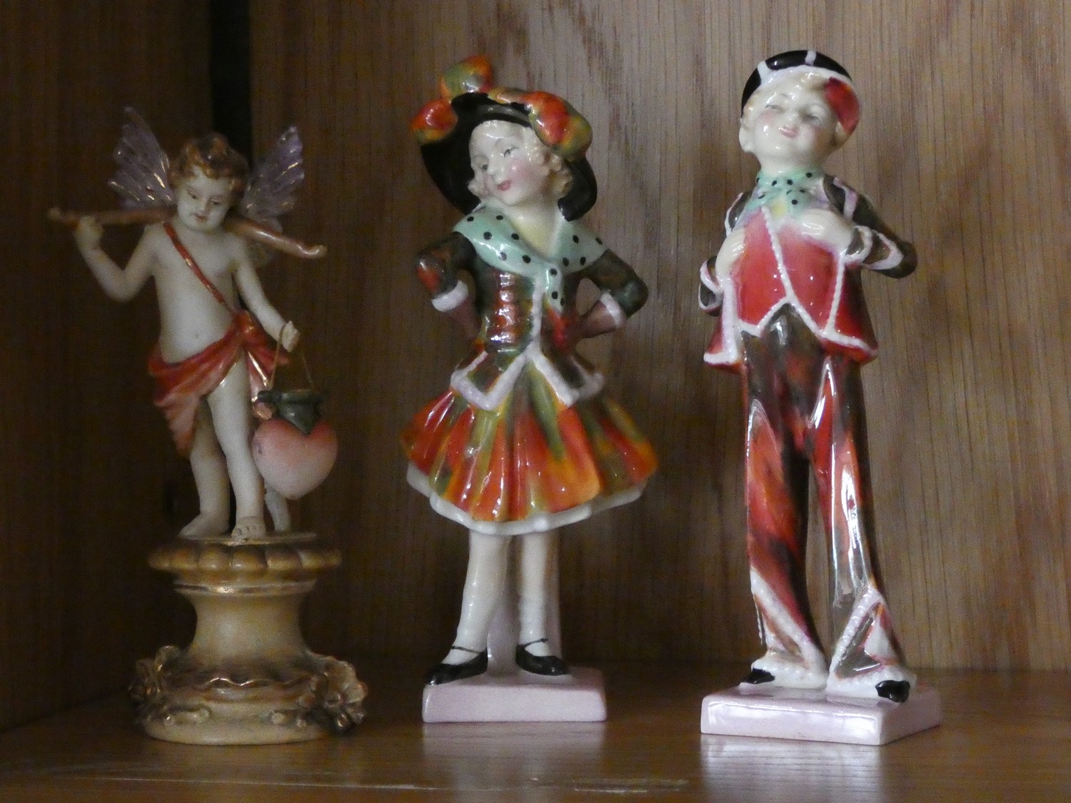 Royal Doulton figurines to include- 'Pearly Girl' No. 2036, 'Pearly Boy' No. 2035, together with a figure of a Cherub