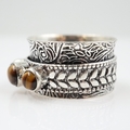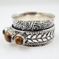 Sterling silver and tigers eye set swivel ring, size T. UK P&P Group 0 (£7+VAT for the first lot and £1+VAT for subsequent lots)