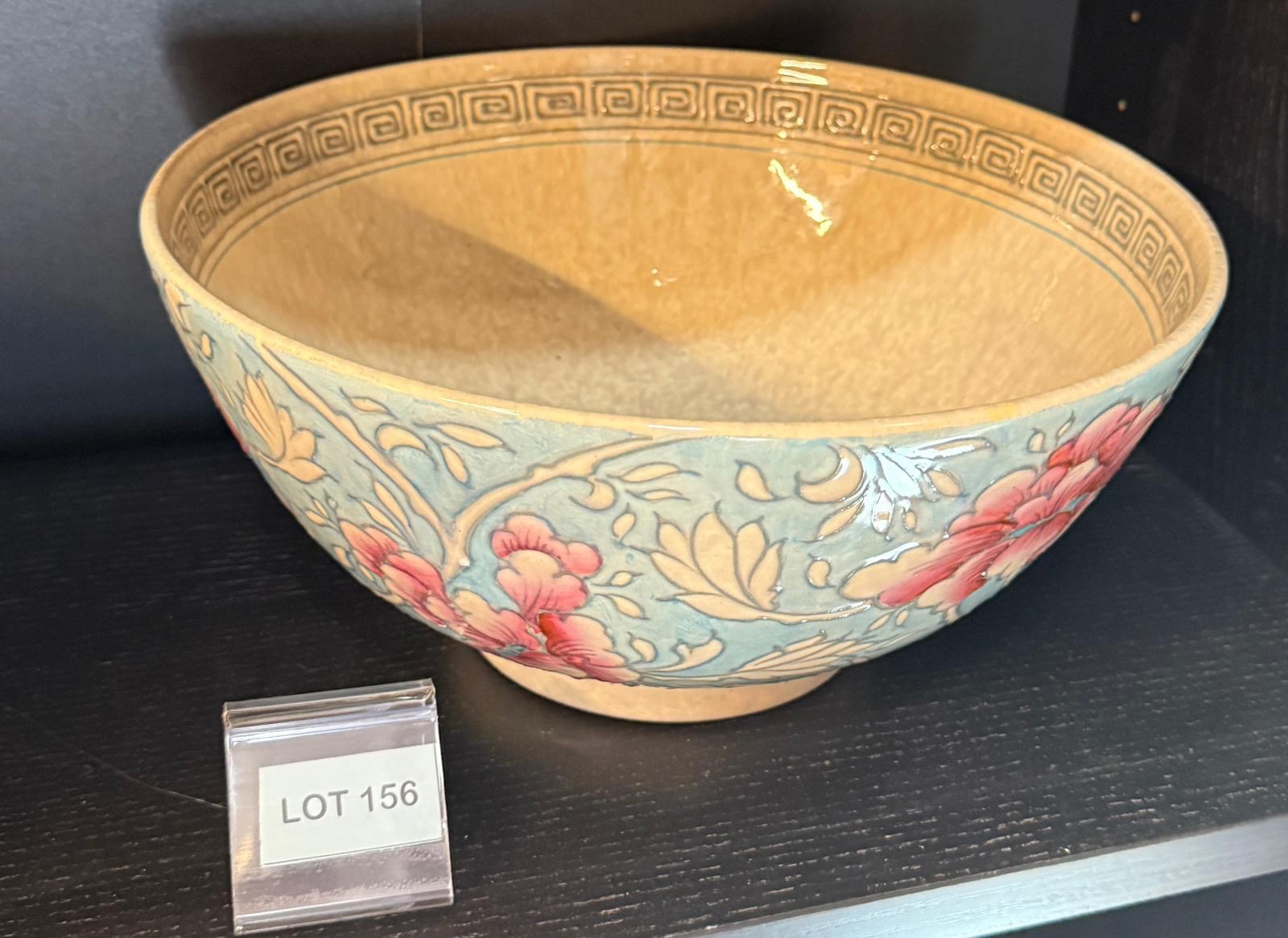 Charlotte Rheads tube lined Famille Rose bowl - arabesque c1930s Wood & Co