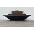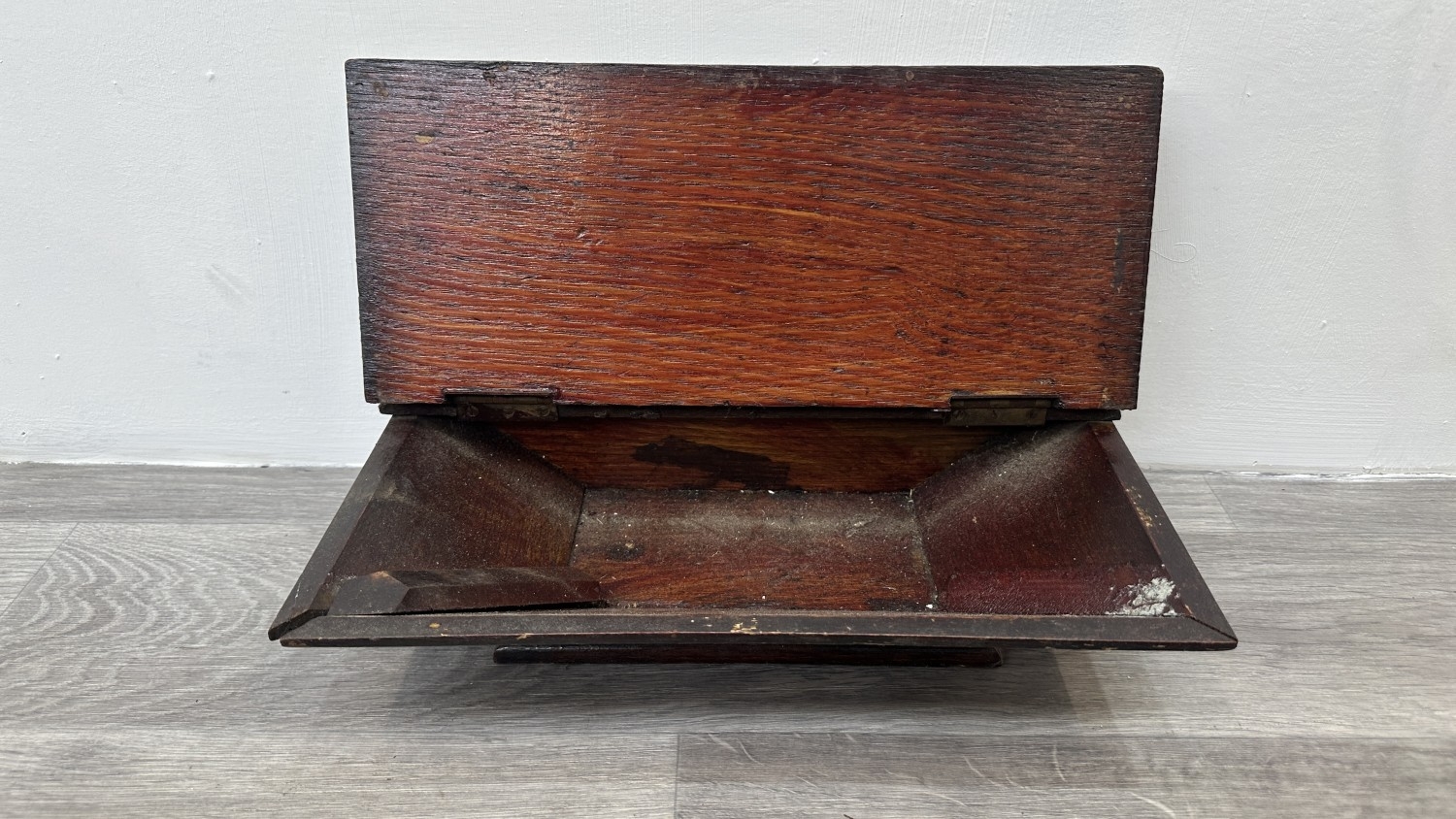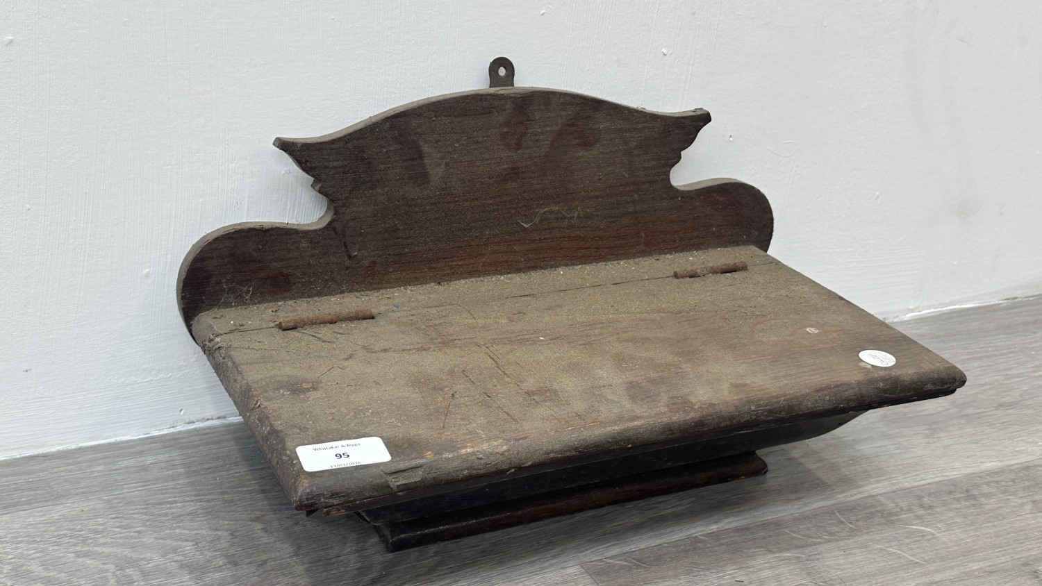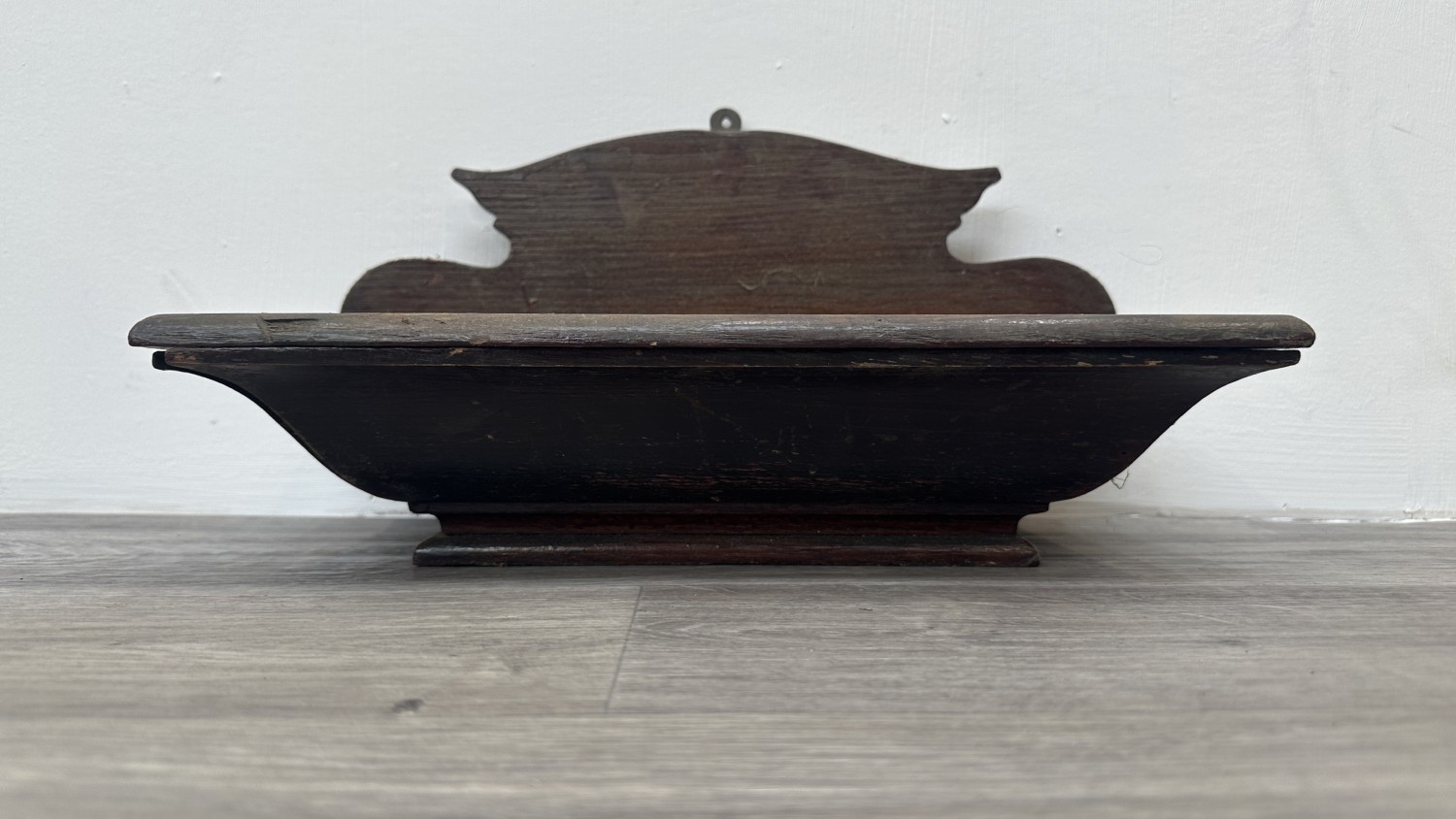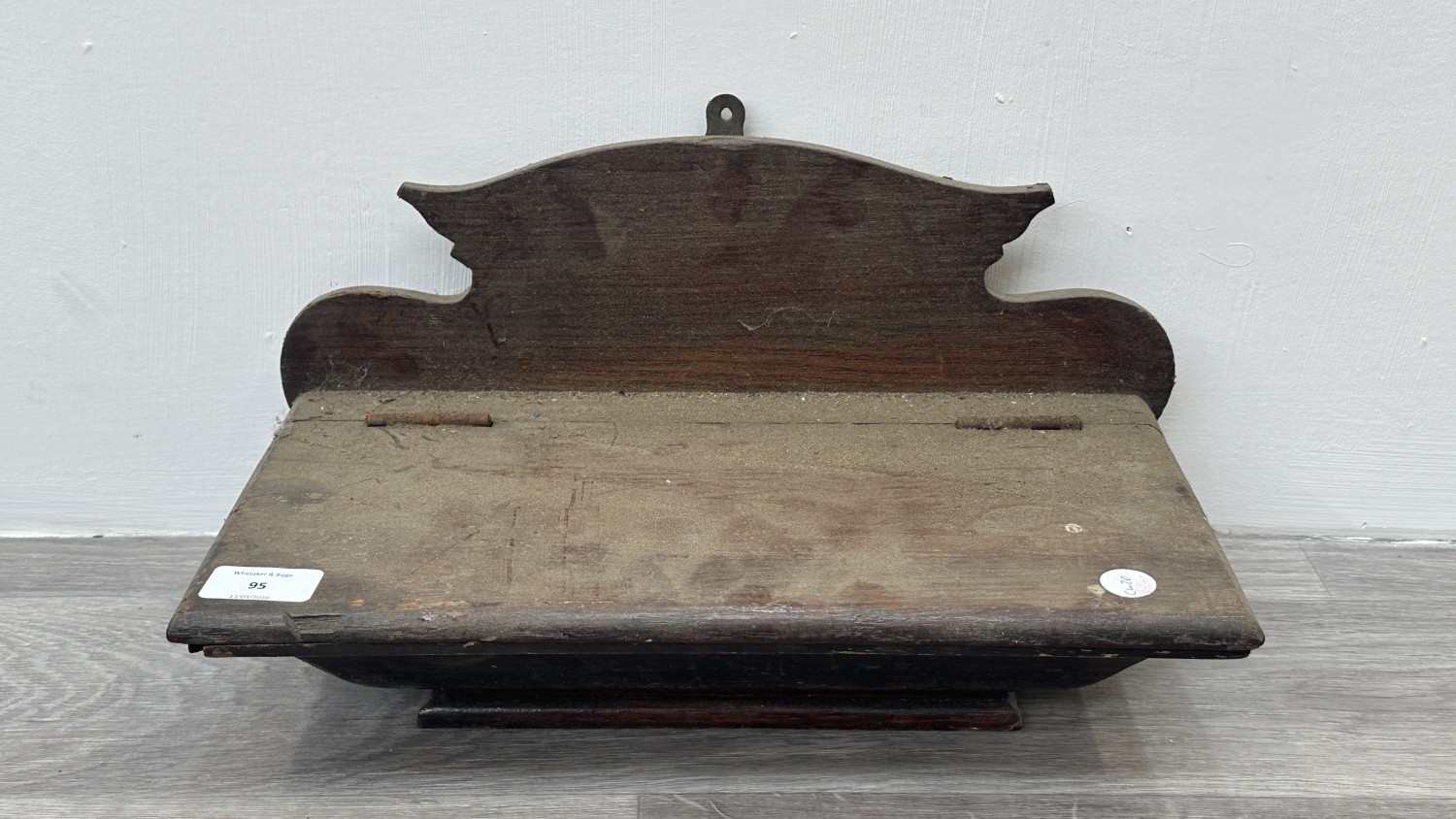 A Georgian style stained oak wall hanging salt/candle box - approx. 21cm high x 37cm wide x 20cm deep