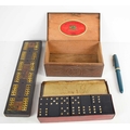 A group of collectables to include Will's Star Cigarettes dominoes in the original tin, cribbage board, State Express 333 cigarette tin and a Parker fountain pen.