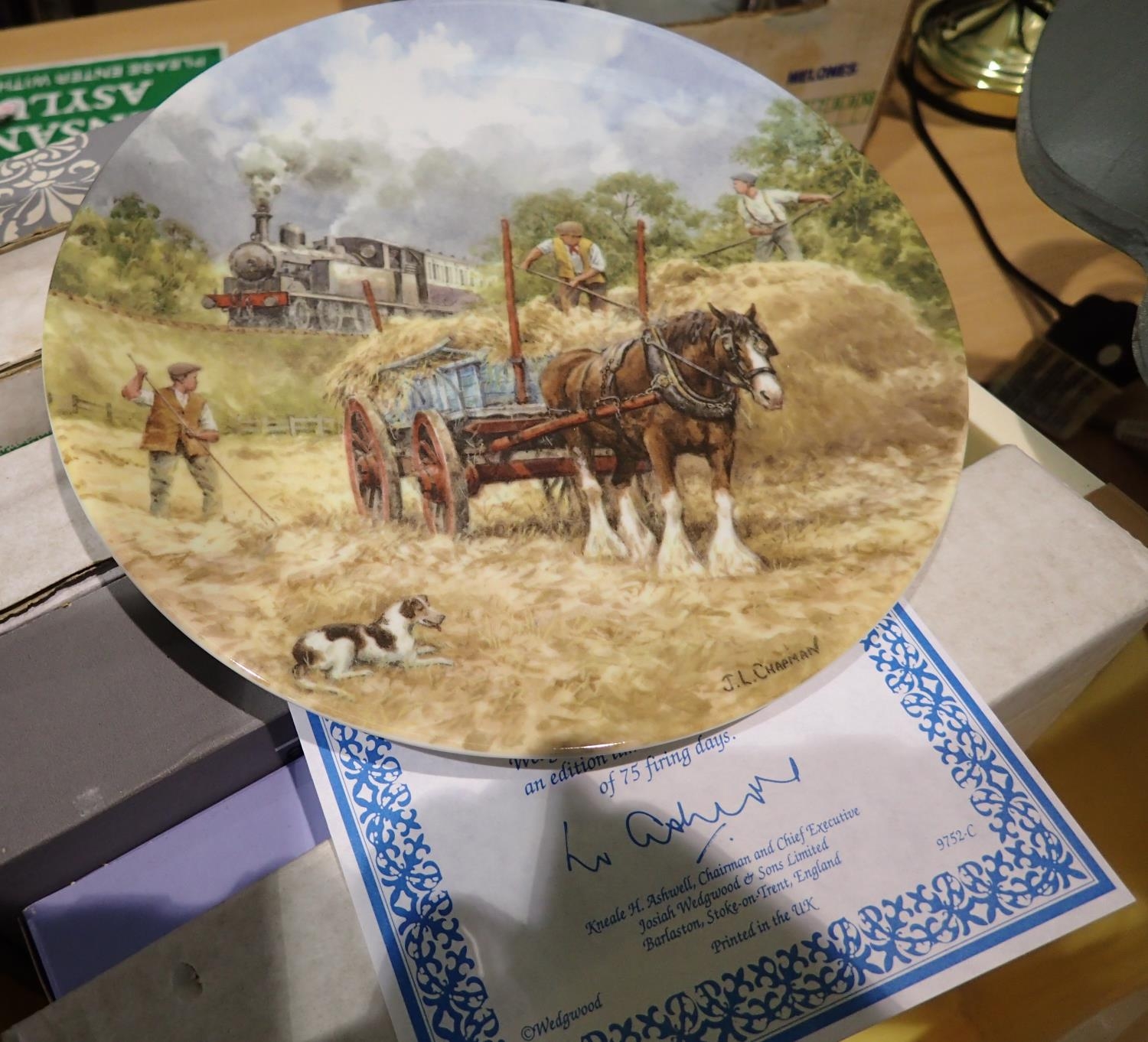 Seven display plates of horses with certificates, D: 20 cm. Not available for in-house P&P