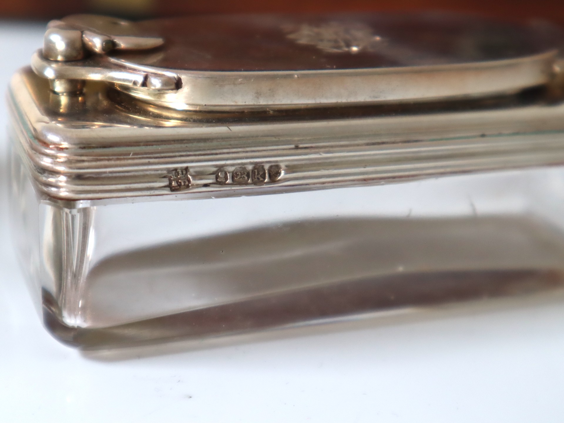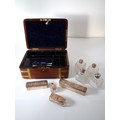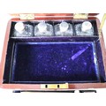 Please see multiple images, glass bottles appear complete , with very minor chipping to raised areas, stoppers are present , no key.