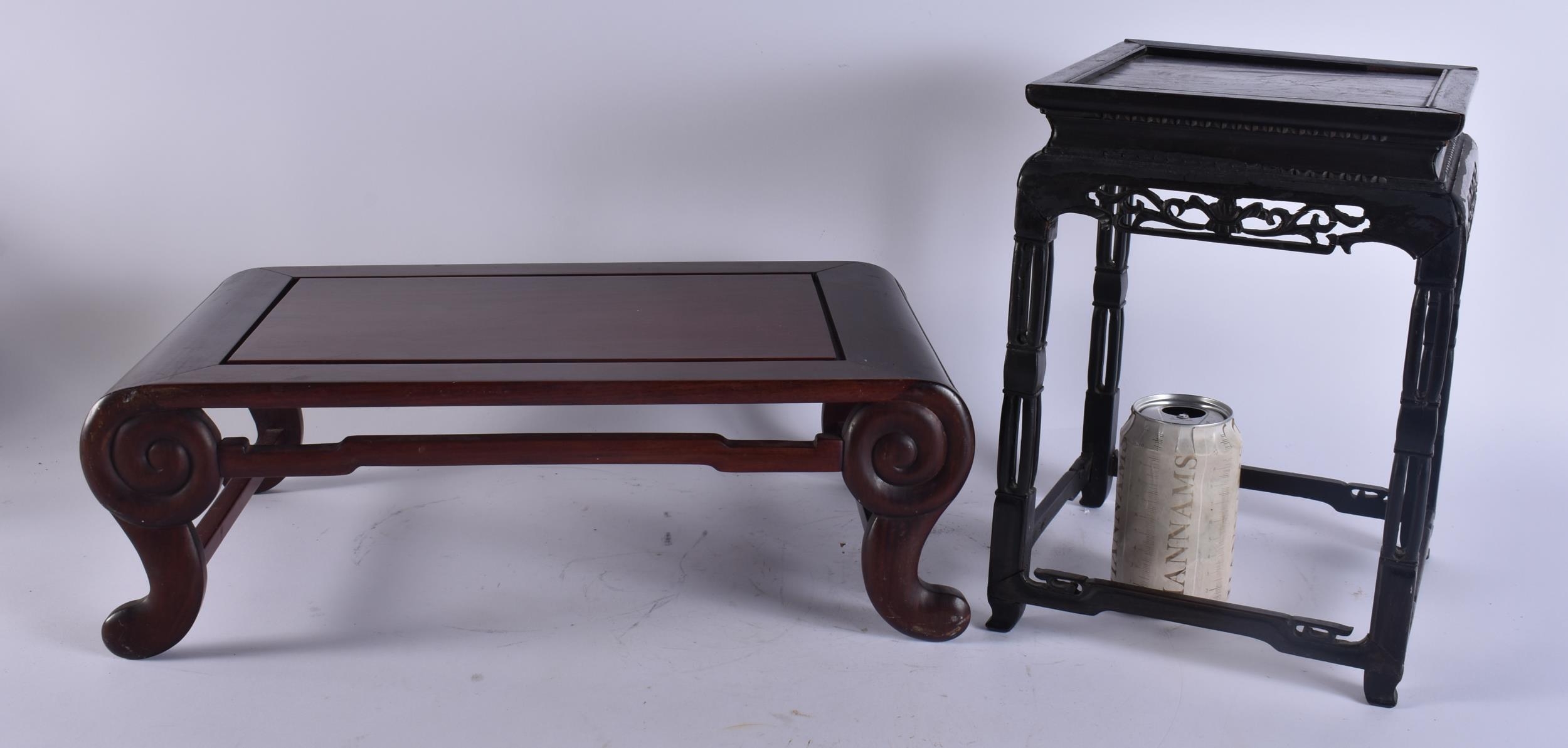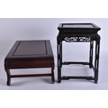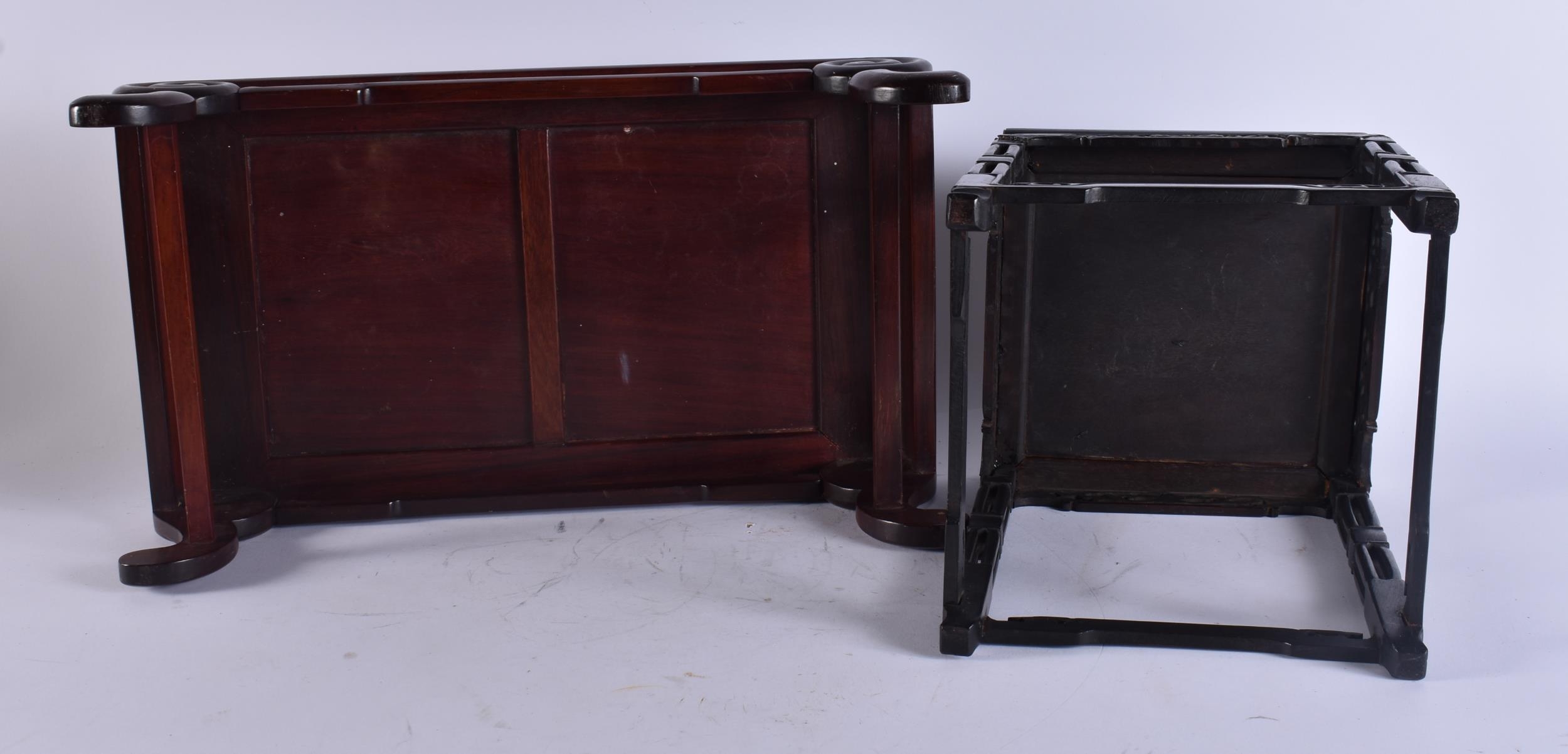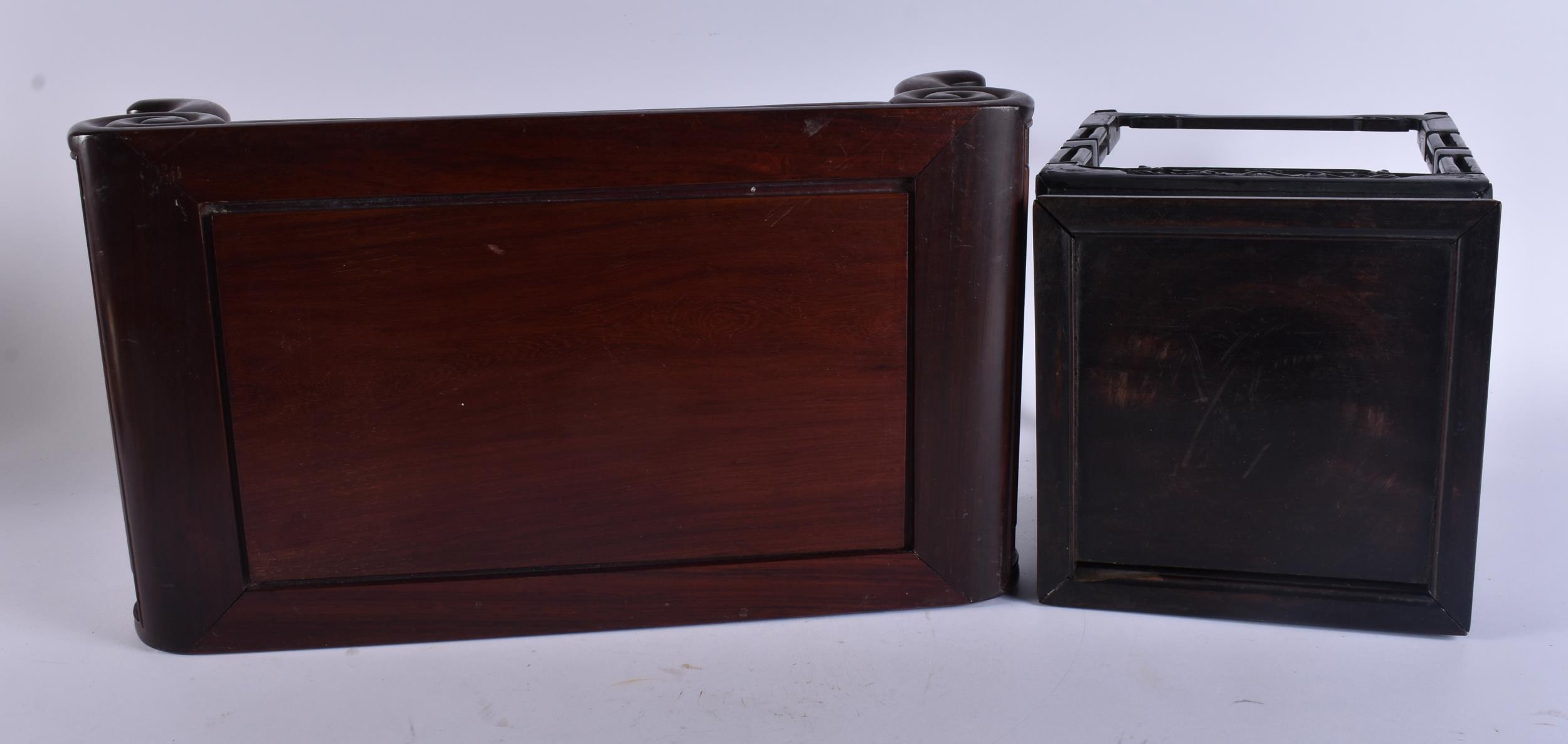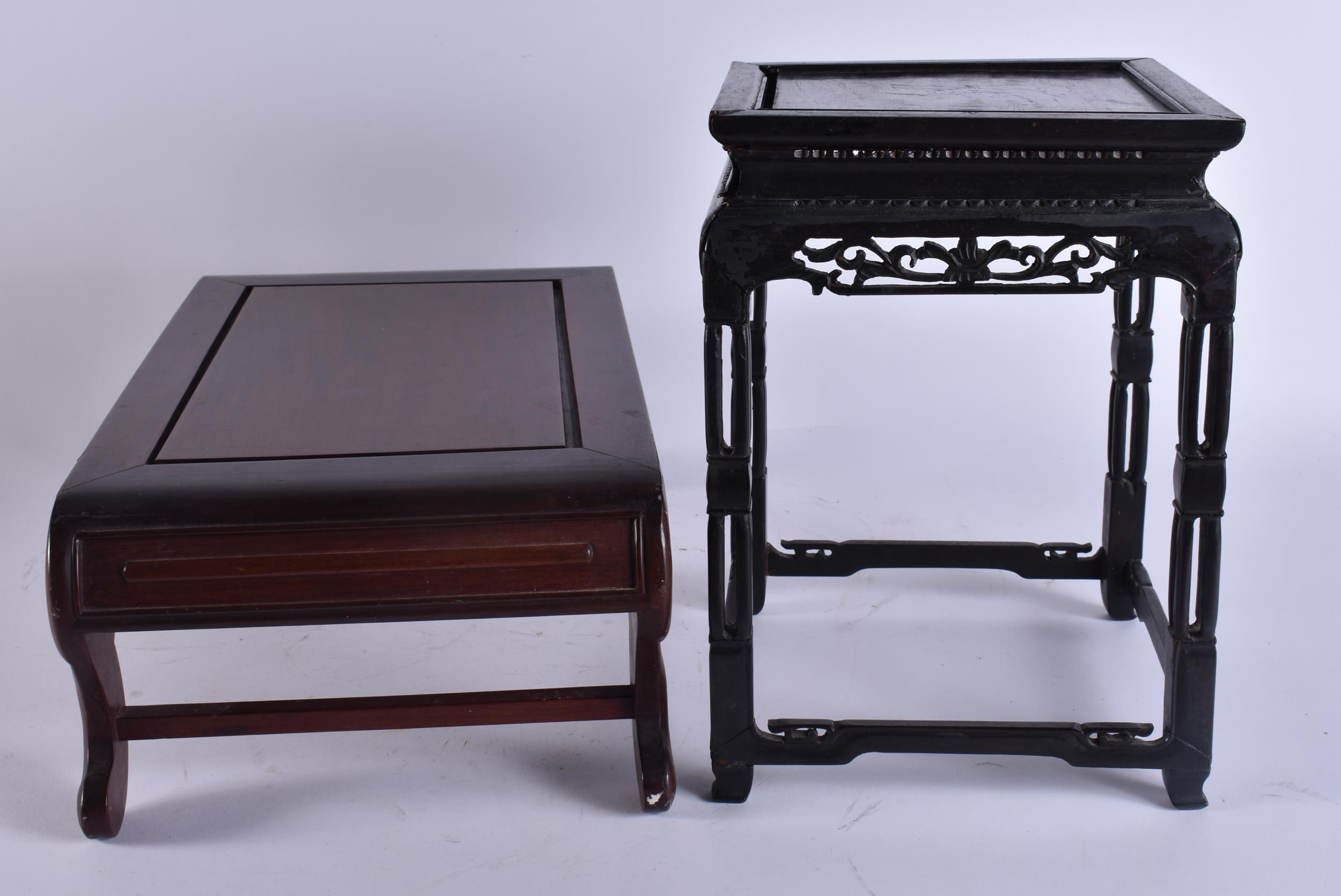TWO EARLY 20TH CENTURY CHINESE CARVED WOOD SCHOLARS STANDS Late Qing/Republic. Largest 44 cm x 24 cm. (2)