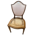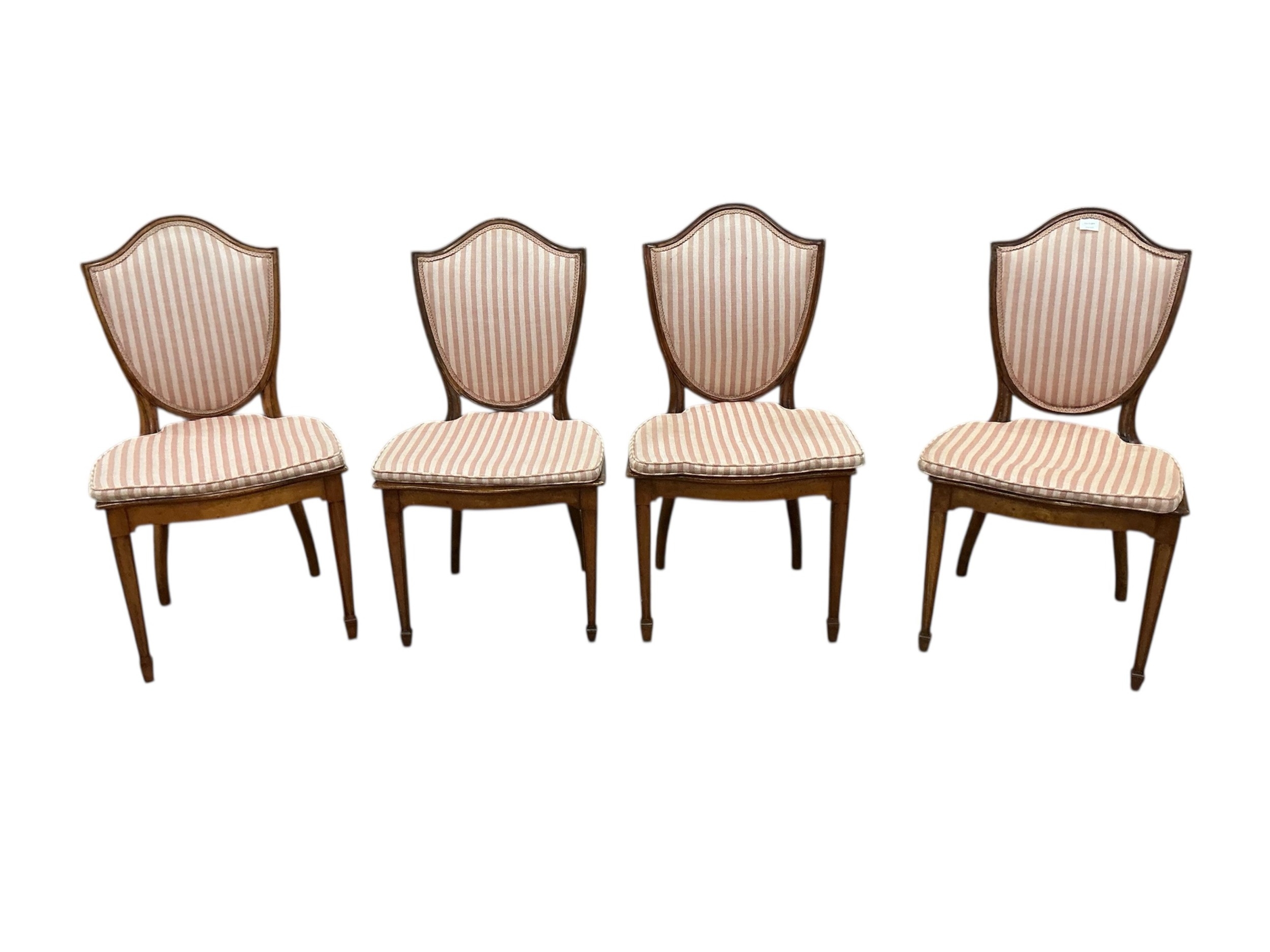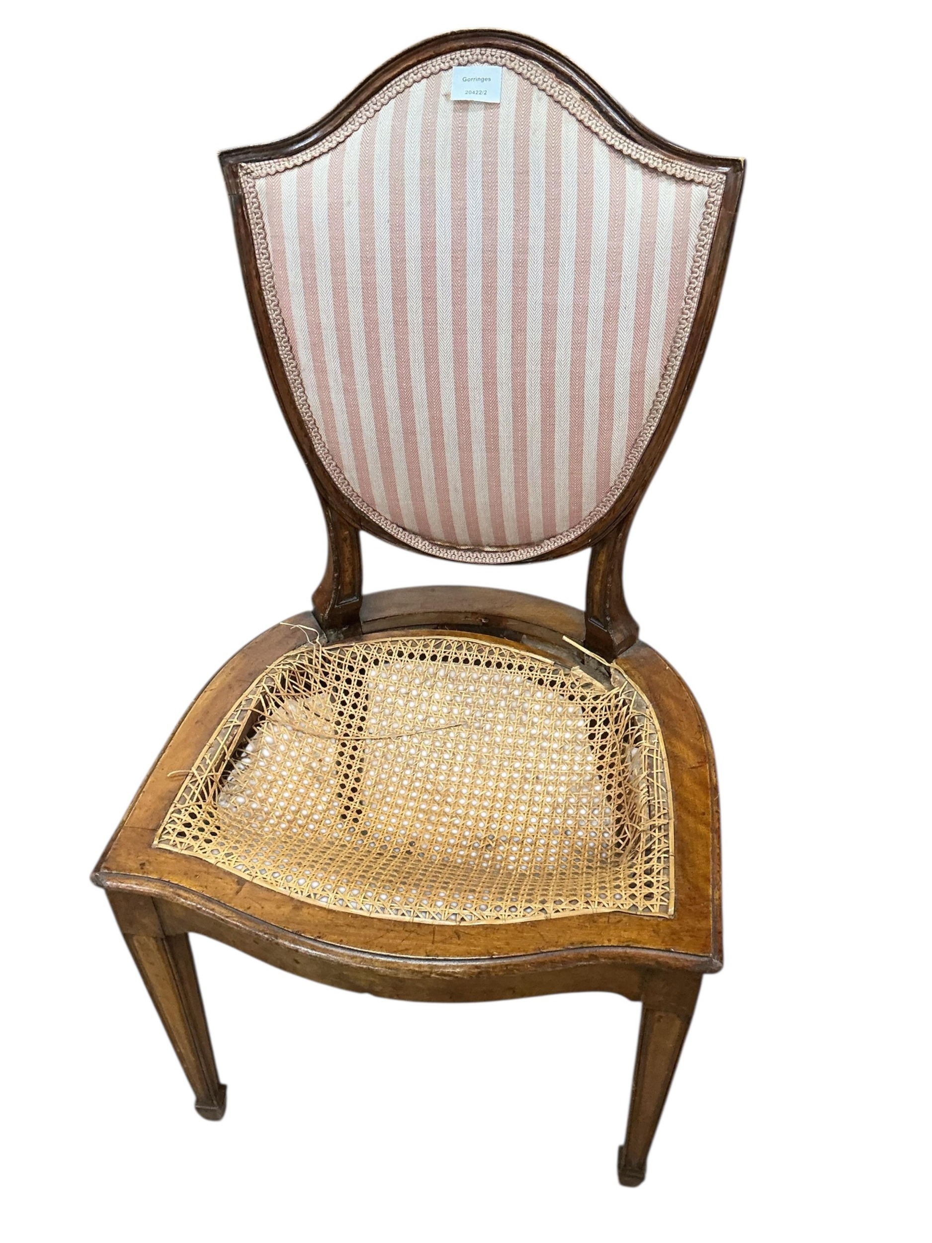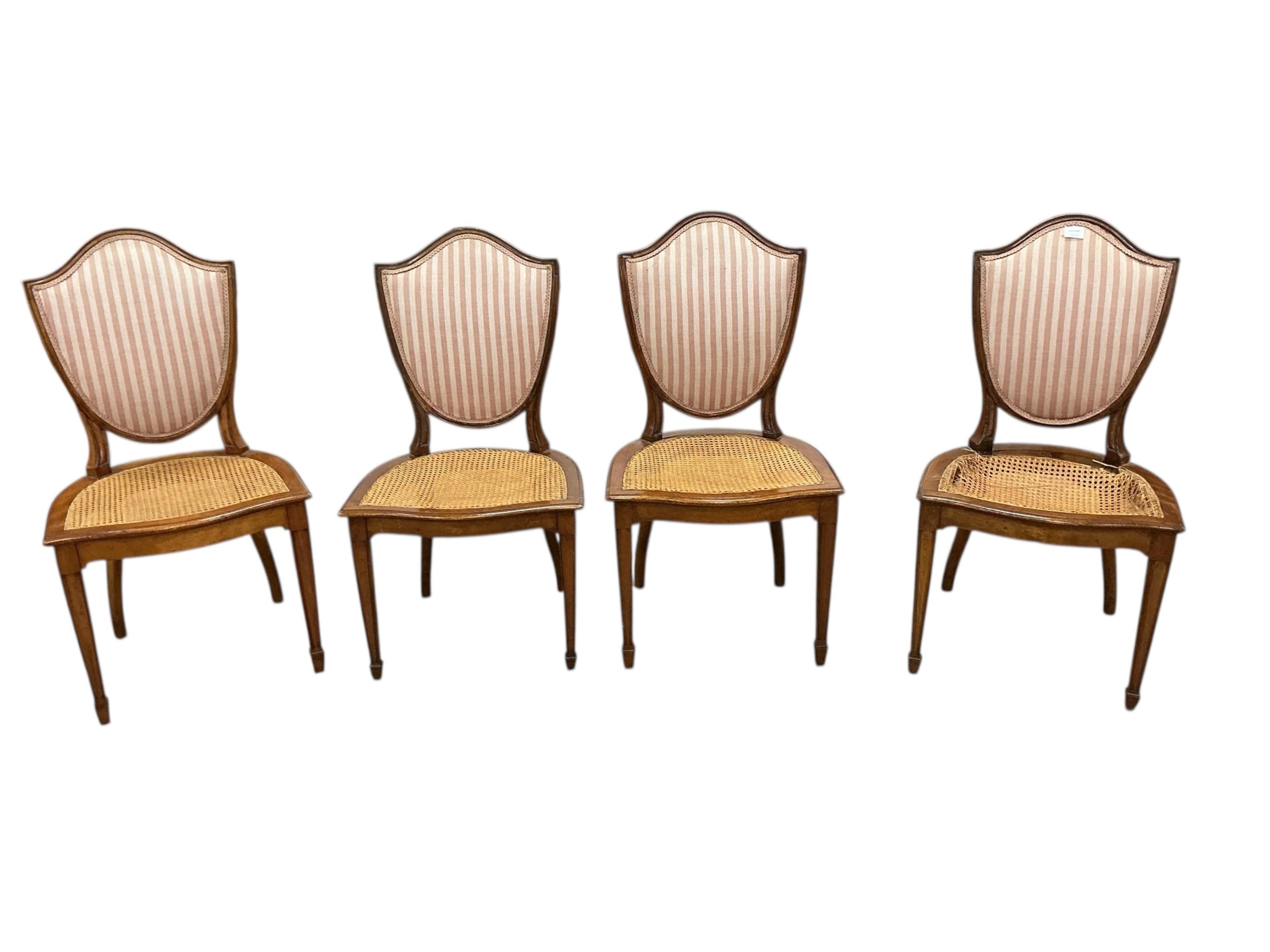 A set of four George III satinwood cane seat dining chairs with shield shape backs, width 50cm, depth 48cm, height 105cm