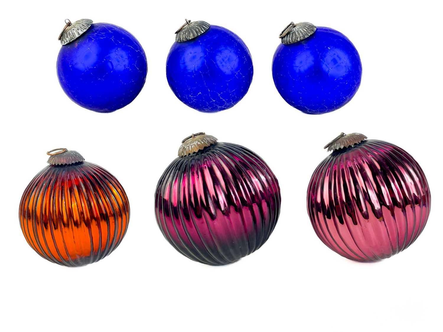 A collection of glass hanging balls, In various sizes and colours. The largest measures 12cm in diameter.