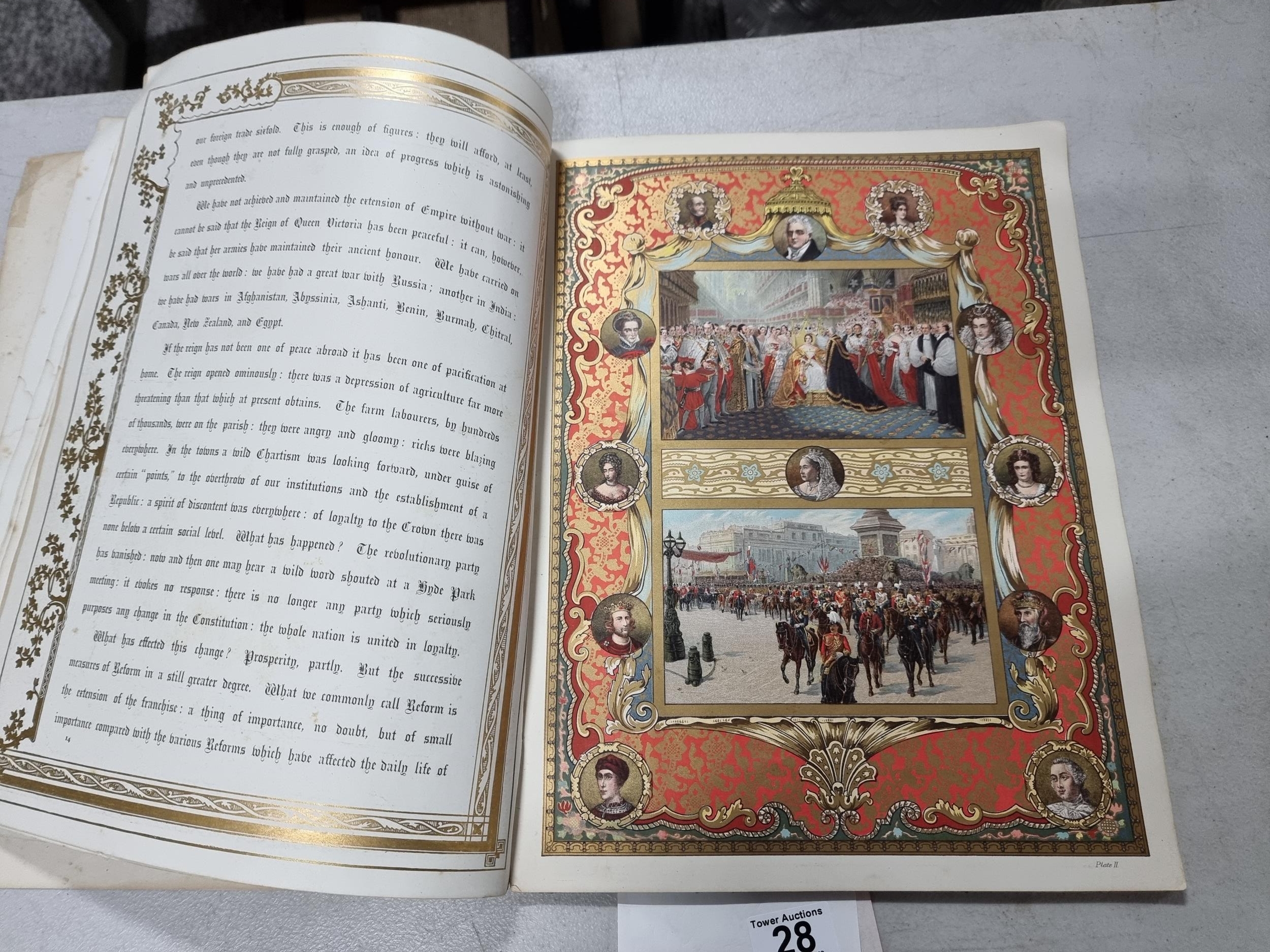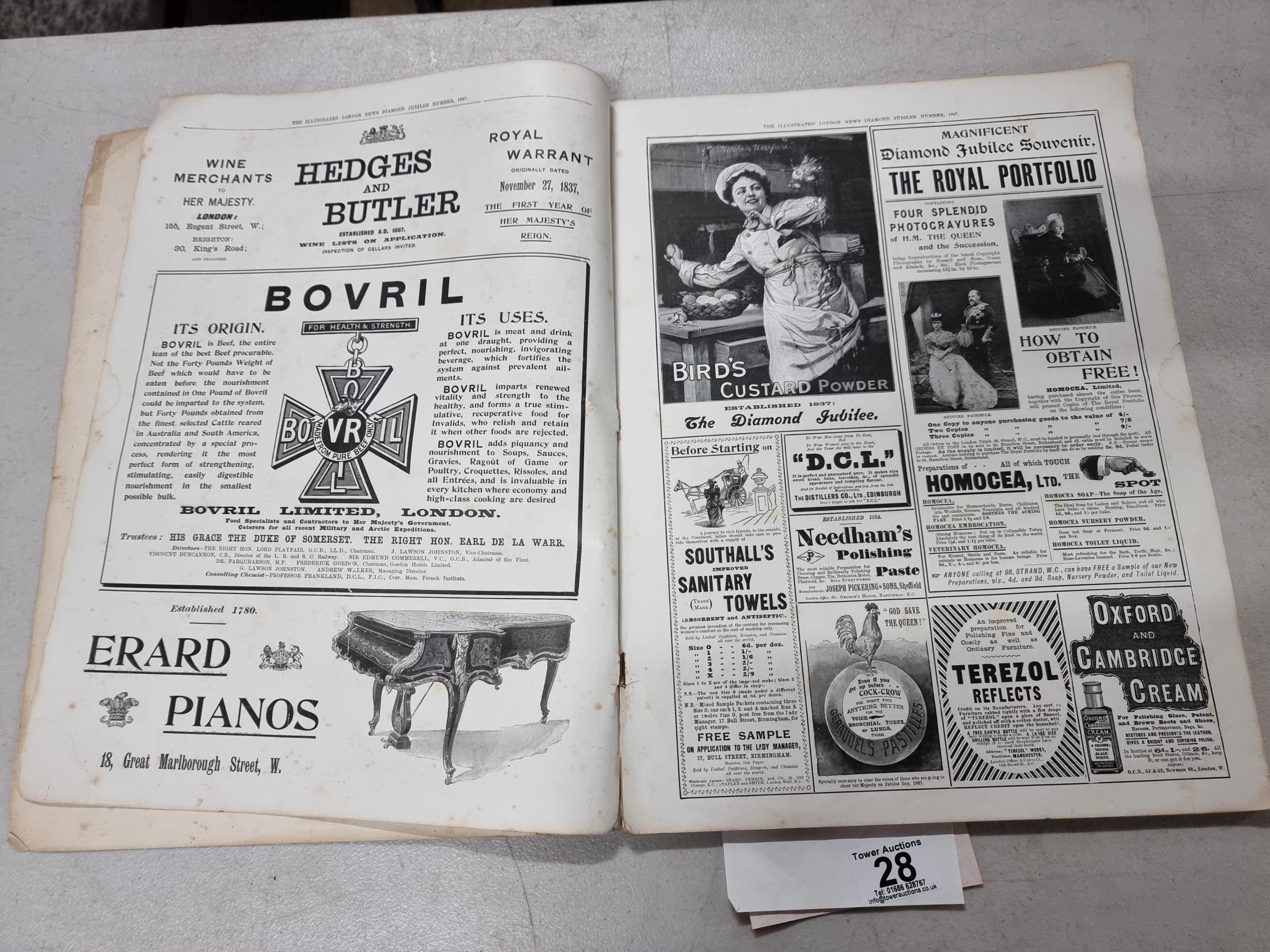 A good antique Illustrated London News, Diamond Jubilee 1897 in overall good condition with good quality coloured plates and advertising from the period, has a colour picture of Queen Victoria and her descendants on the front, a rare magazine.