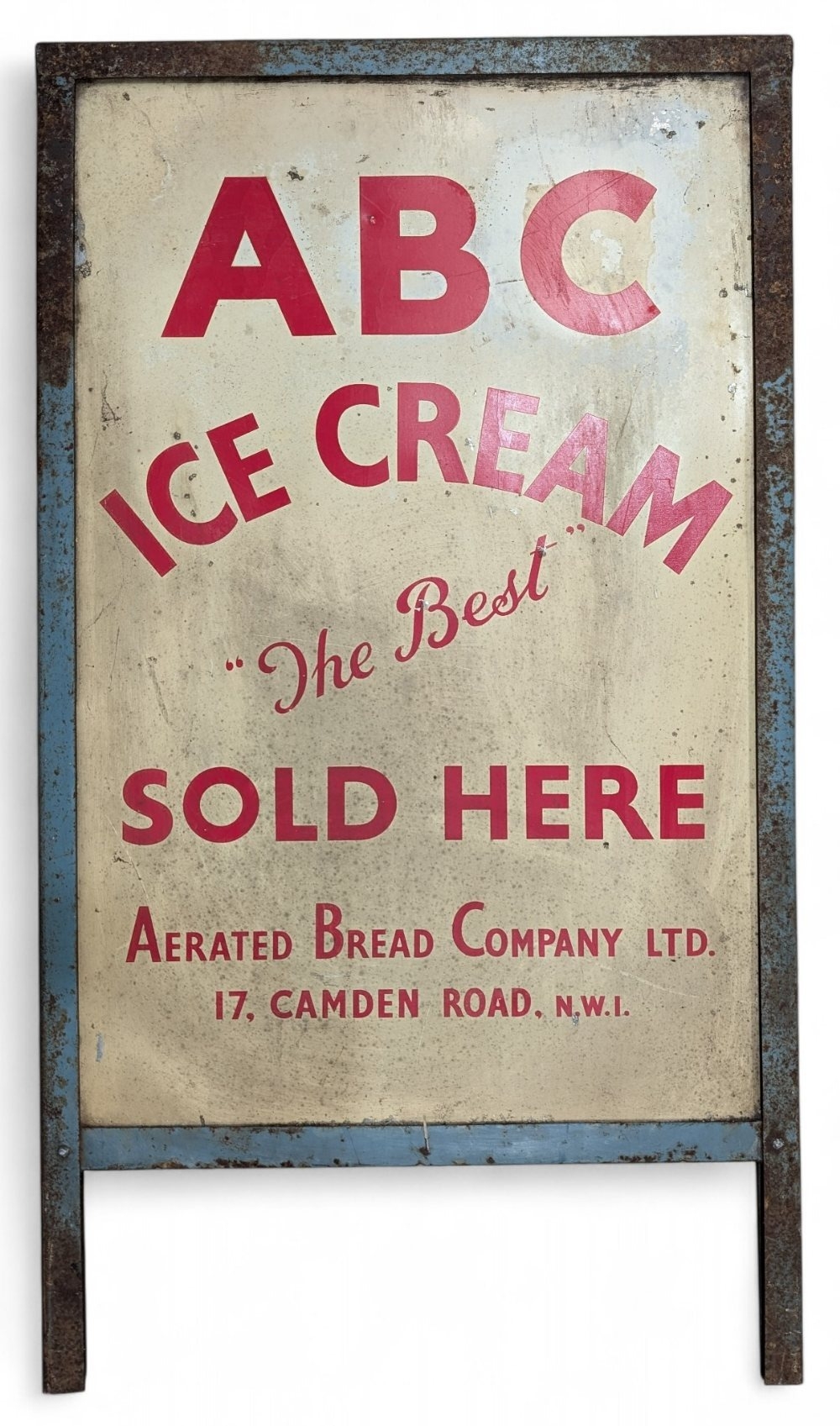 Period ABC Ice-cream Shop Advertising Sign the best sold here shop sign, a painted sign single sided Aerated Bread Company NW1 (Camdem London) in frame - size 52cm x 93cm