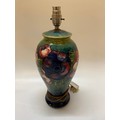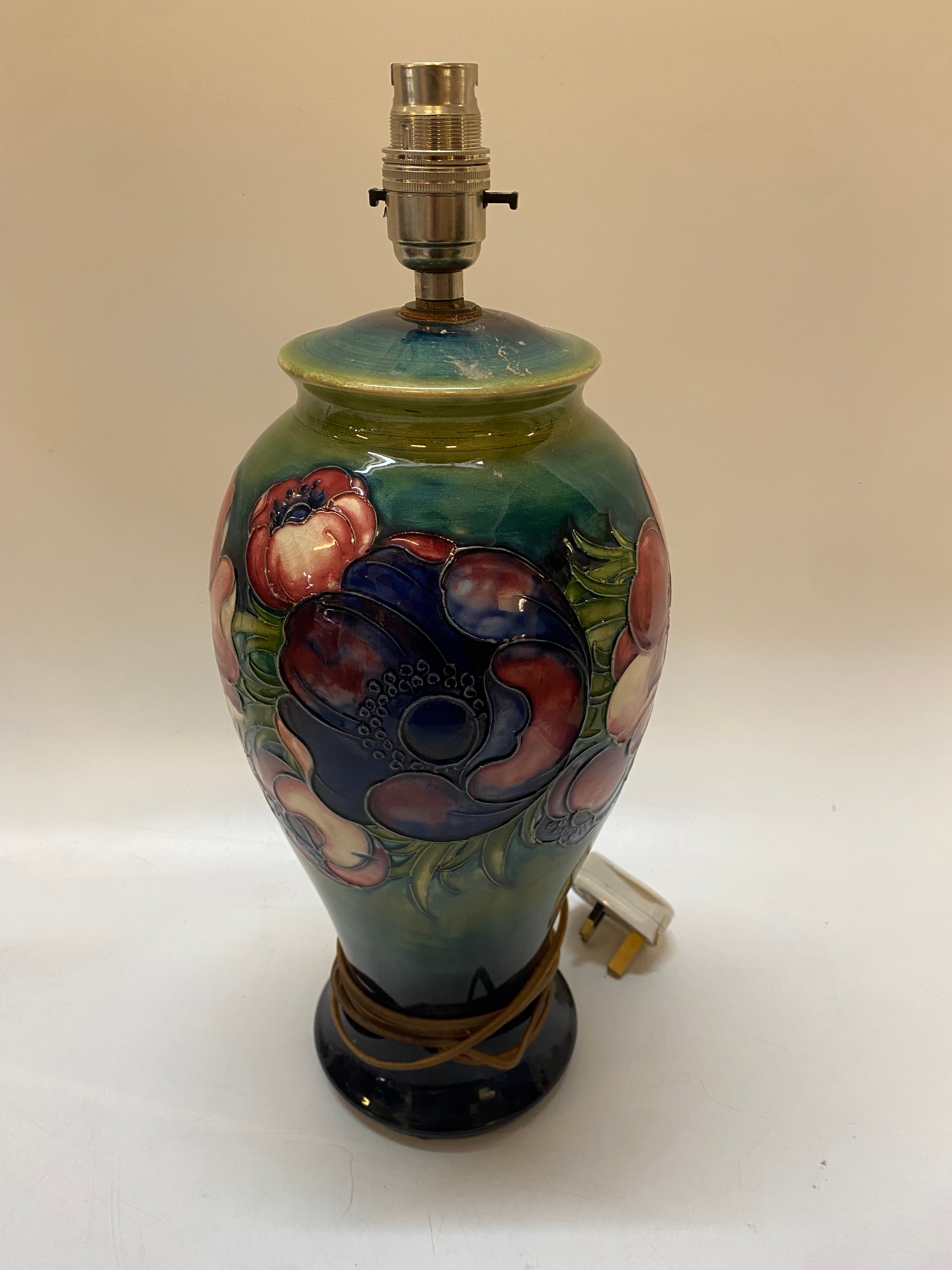A Moorcroft tablelamp base, green ground decorated anemones, green mark to the base - 12in. high