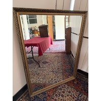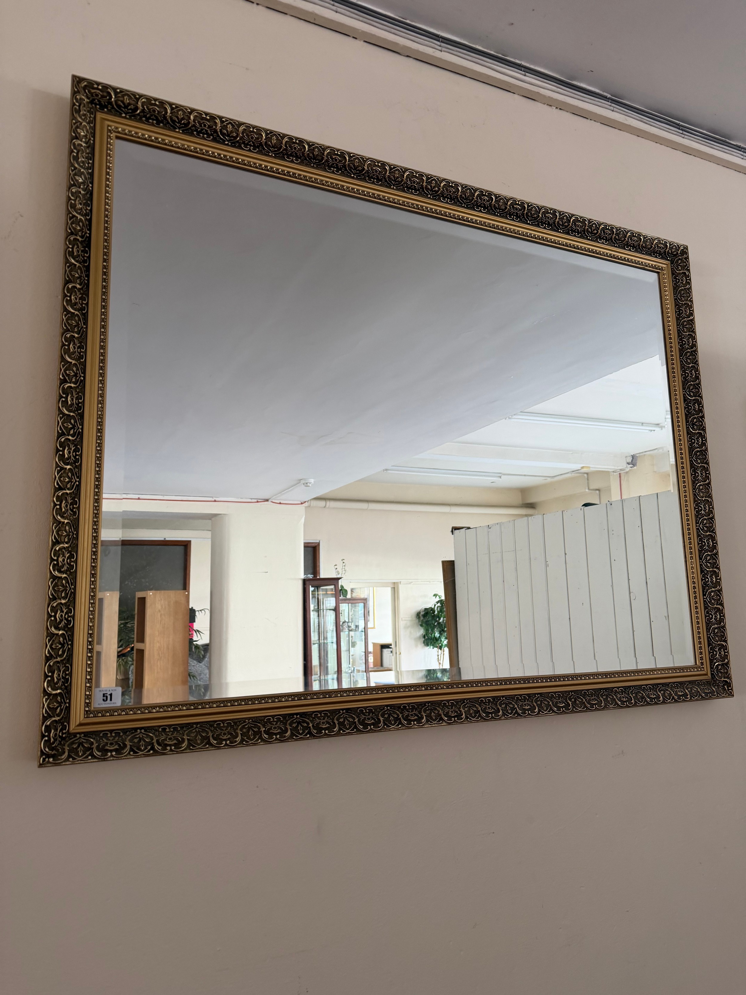 A large rectangular bevelled wall mirror in a gilt leaf decorated frame - 44in. x 34in.