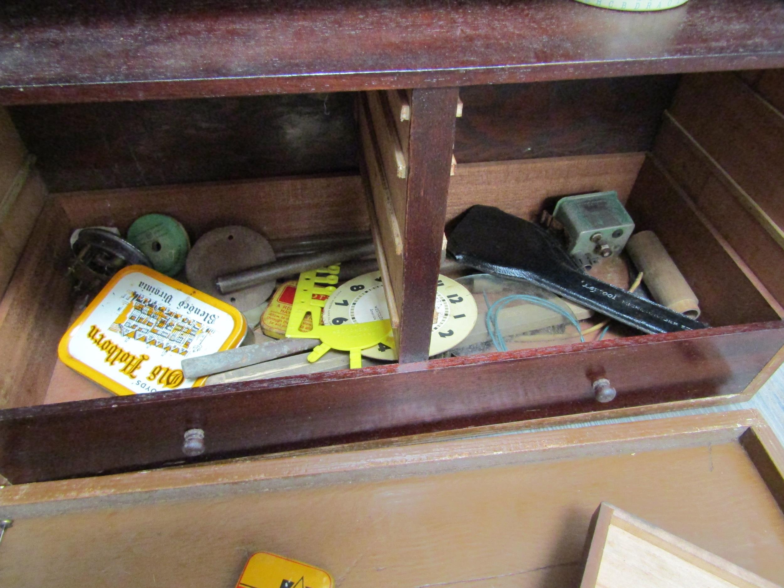 A watch repairers travelling cabinet with horological tools ...
