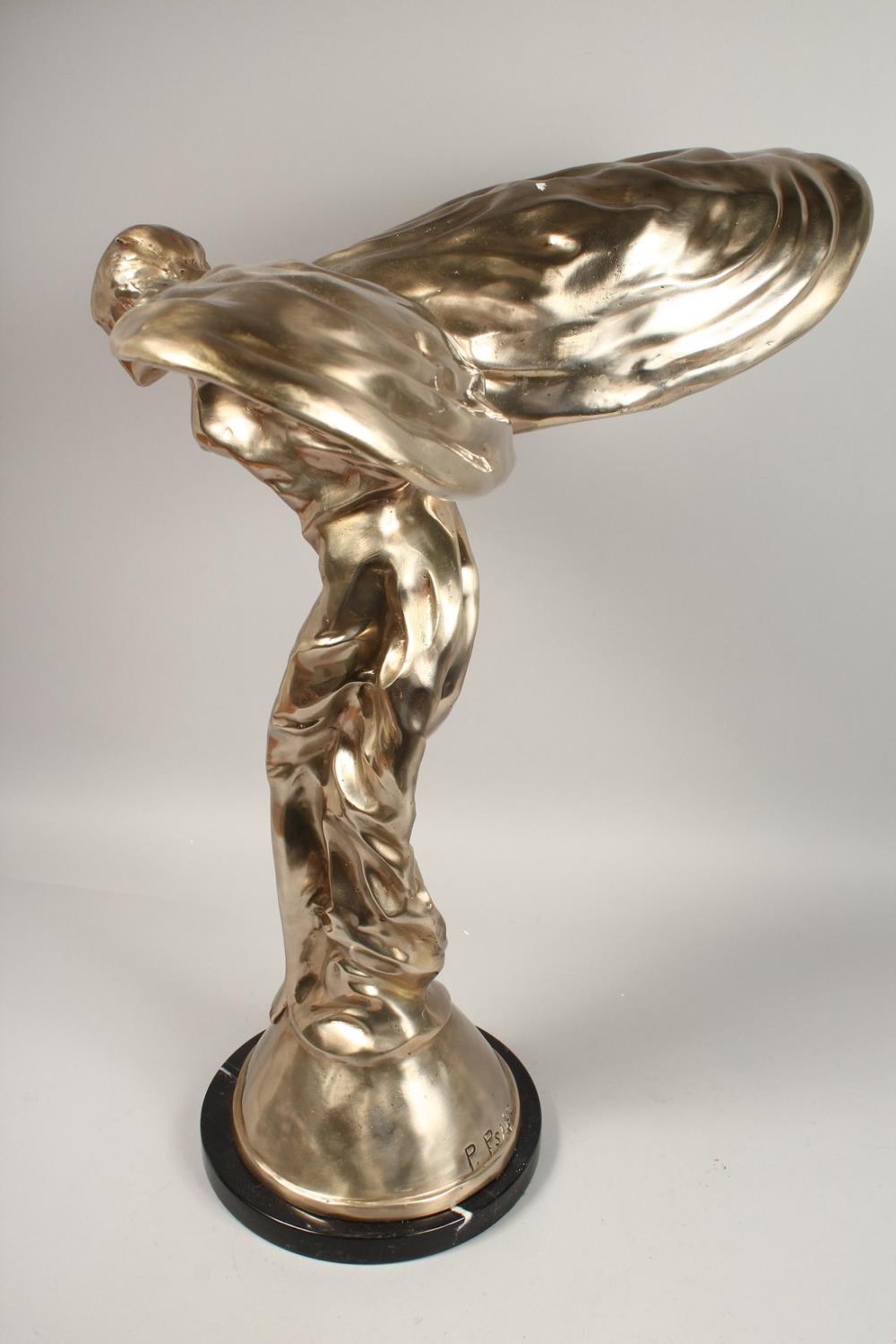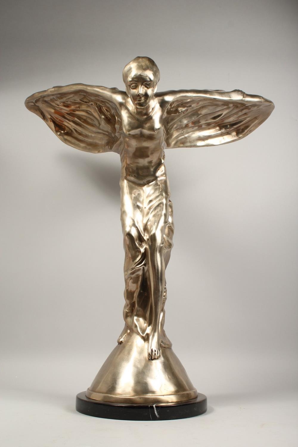 A LARGE SILVERED BRONZE SPIRIT OF ECSTASY.