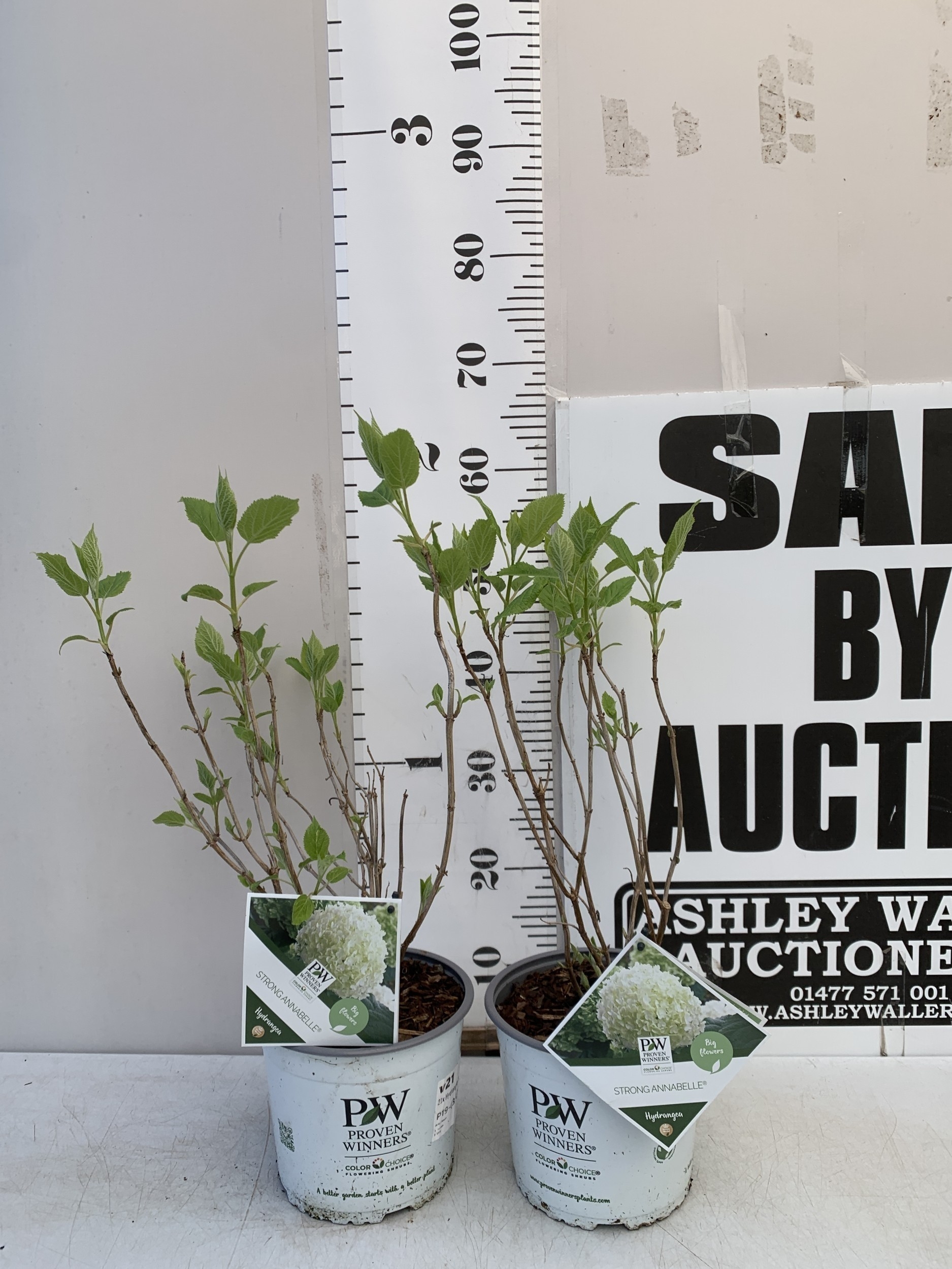 TWO WHITE 'STRONG ANNABELLE' HYDRANGEA IN 3 LTR POTS IN BUD. APPROX 60CM TALL, TO BE SOLD FOR THE PAIR