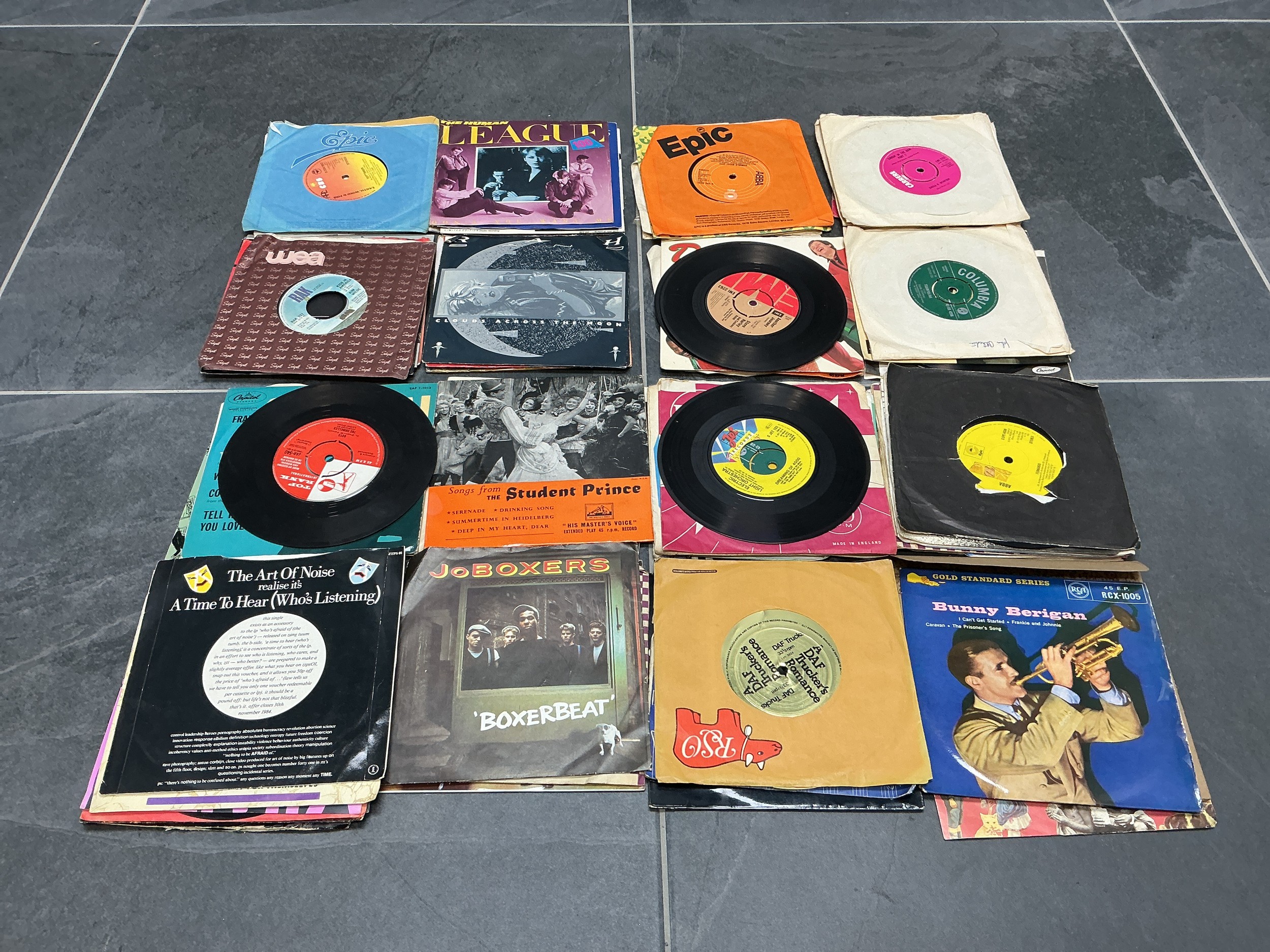 A Large Selection of 7" Vinyl Singles/EPs - Includes Earth Wind & Fire, Band Aid, The Human League, Whitney Houston, Eric Clapton, ABBA, The Sweet, Dr Hook, And More. Pre-Owned