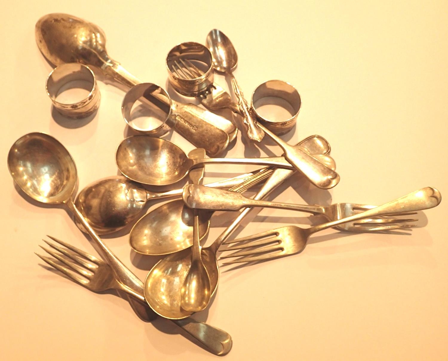 Collection of silver plated flatware and six napkin rings. P&P Group 1 (£14+VAT for the first lot and £1+VAT for subsequent lots)