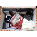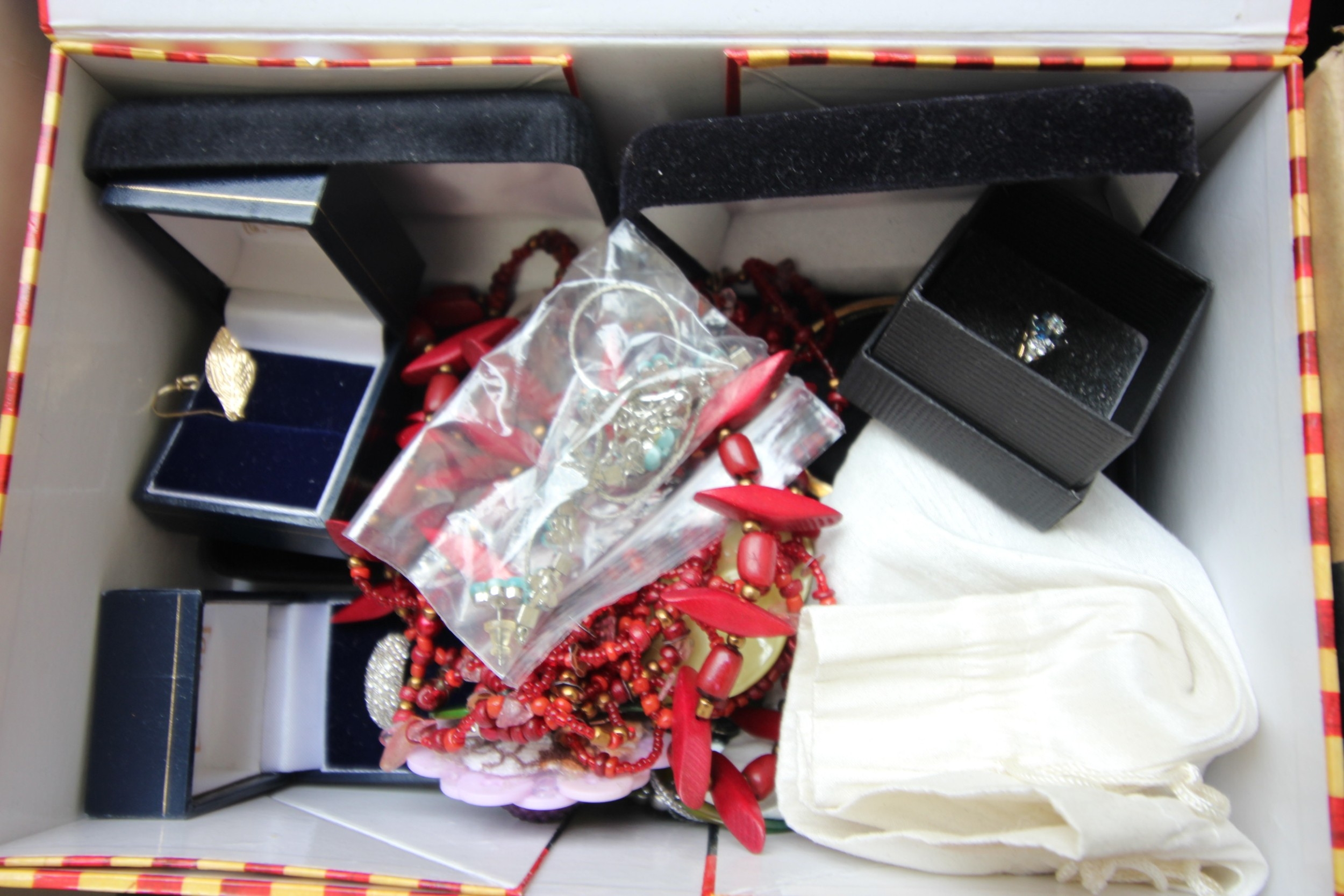 Mixed box of cosmetic jewelry, bangles, necklaces, brooches, earrings etc