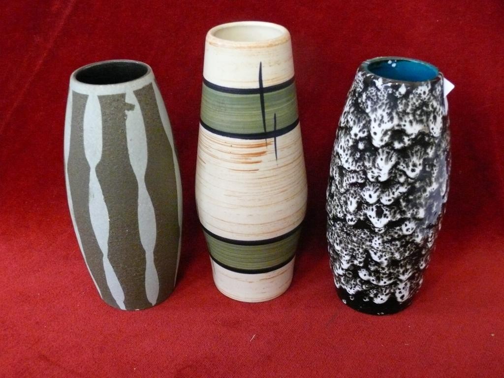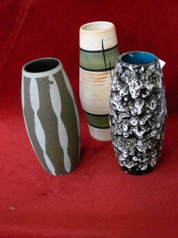 3 X WEST GERMAN VASES, EACH APPROX 7" HIGH