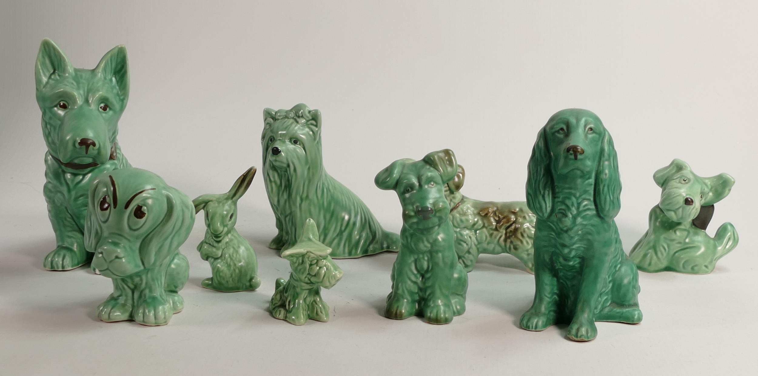 Sylvac green comical dog figures including 5027, 1326, 1119, 1578, 1509, 1207(a/f) & 1461 (a/f)(9)