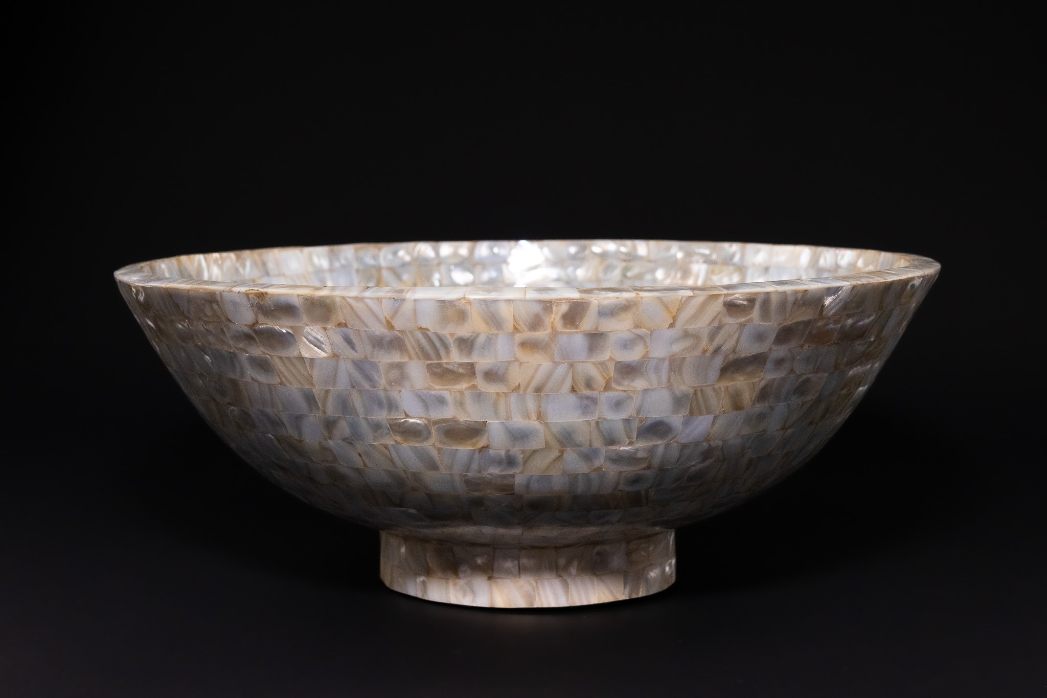 A LARGE ANGLO-INDIAN MOTHER-OF-PEARL MOSAIC FOOTED DECORATIVE BOWL, 19TH CENTURY OR LATER. -