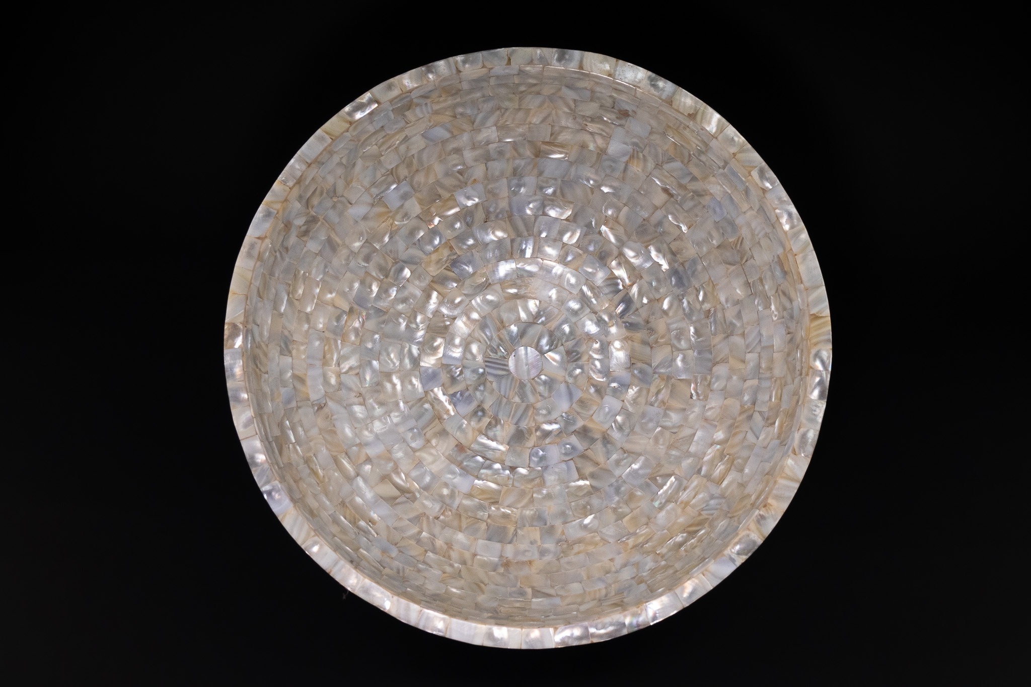 A LARGE ANGLO-INDIAN MOTHER-OF-PEARL MOSAIC FOOTED DECORATIV...