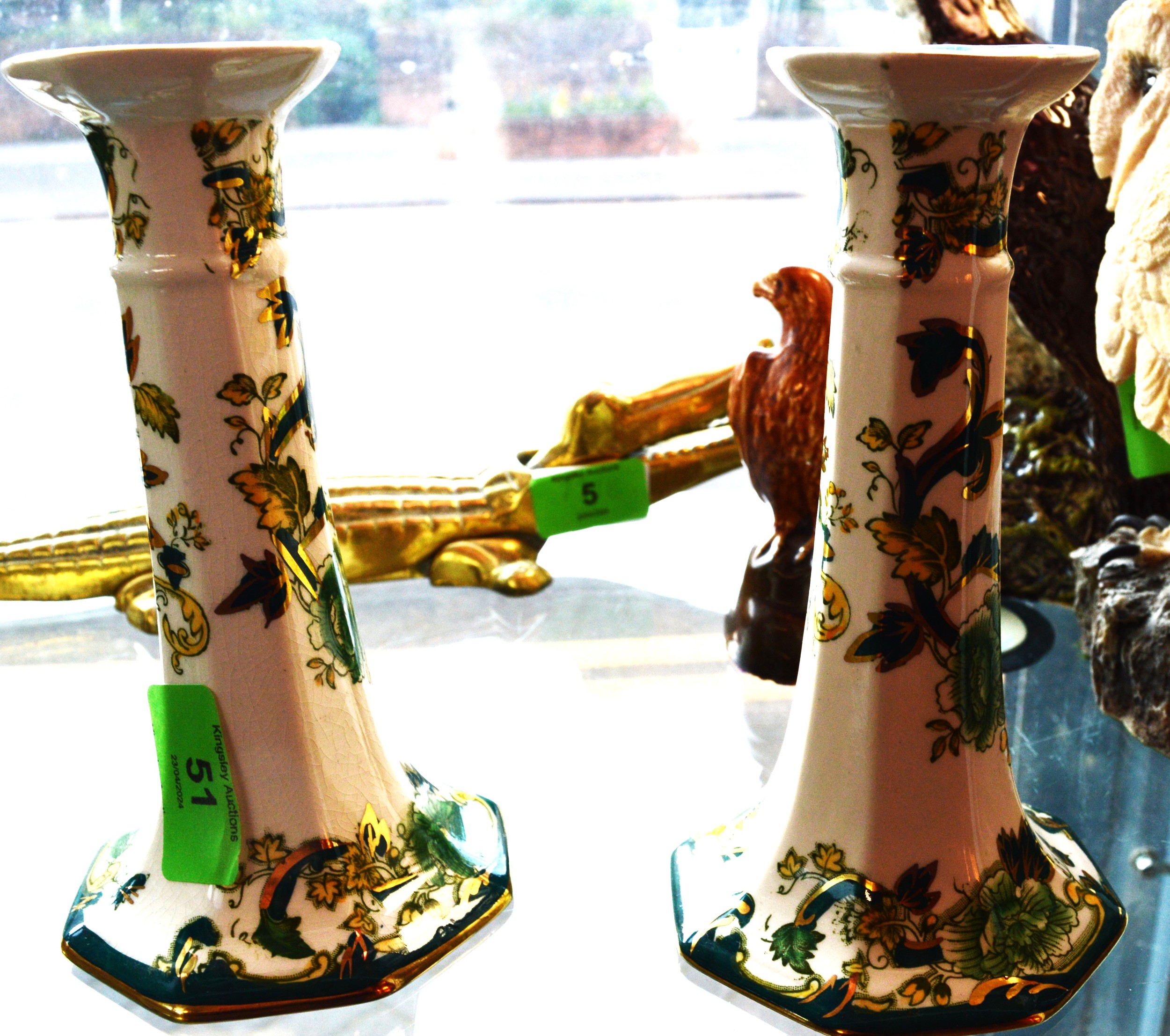 Pair of Masons Chartreuse Candle Sticks