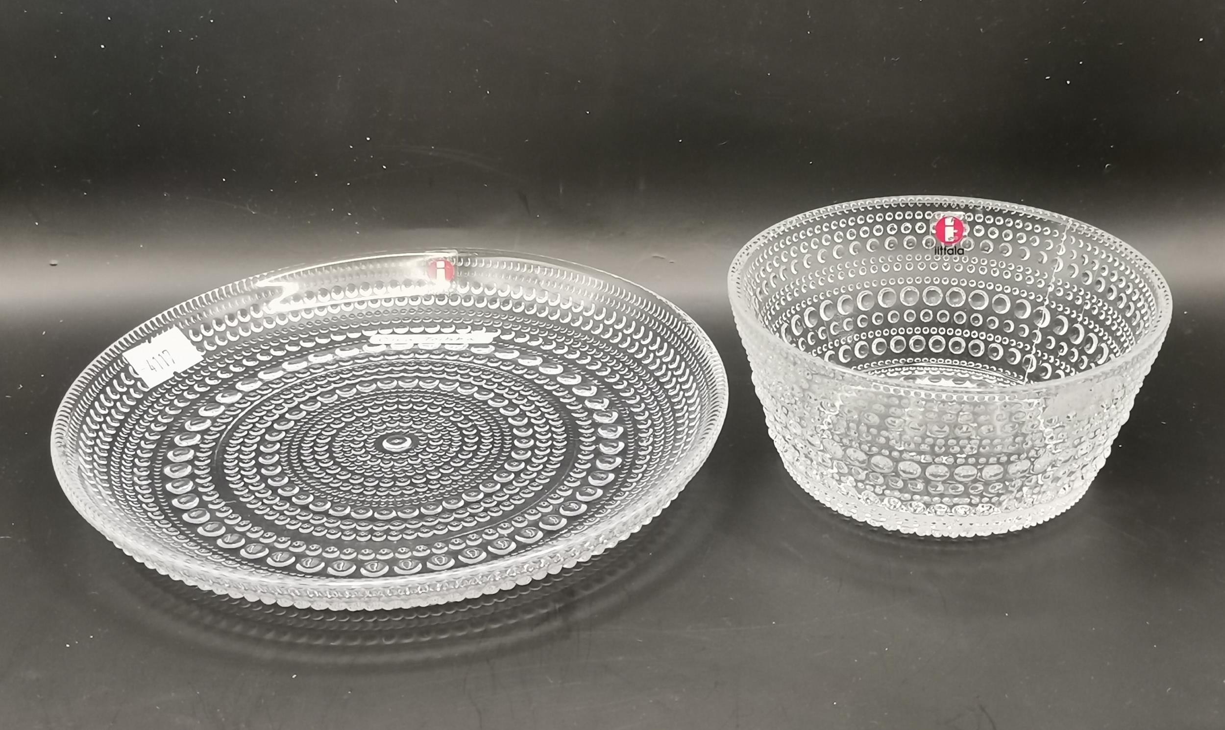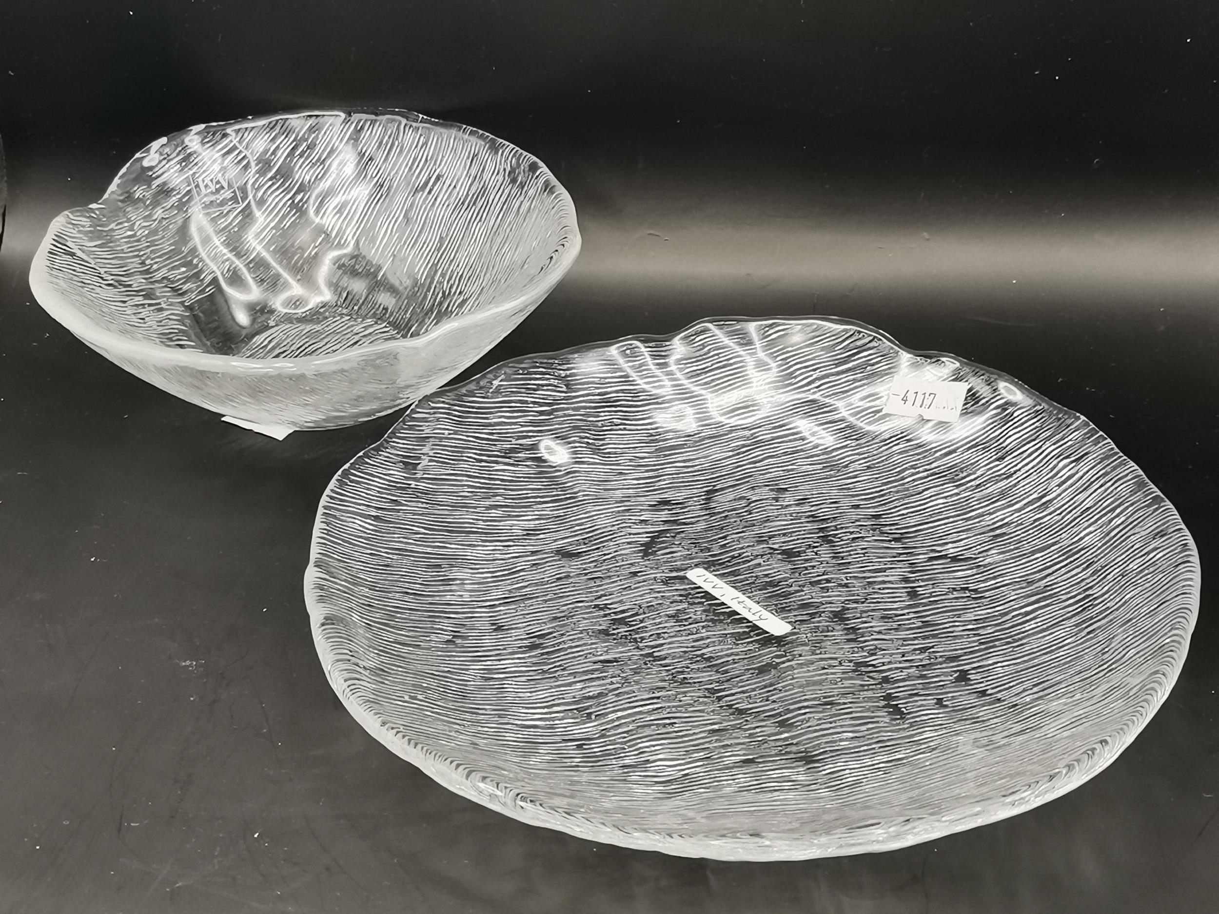Mid-Century Nuutajarvi Kastehelmi Finland Glass plate and bowl by Oiva Toikka plus Italian glass plate and bowl by IVV (Industria Vetraria Valdarnese) (x4)