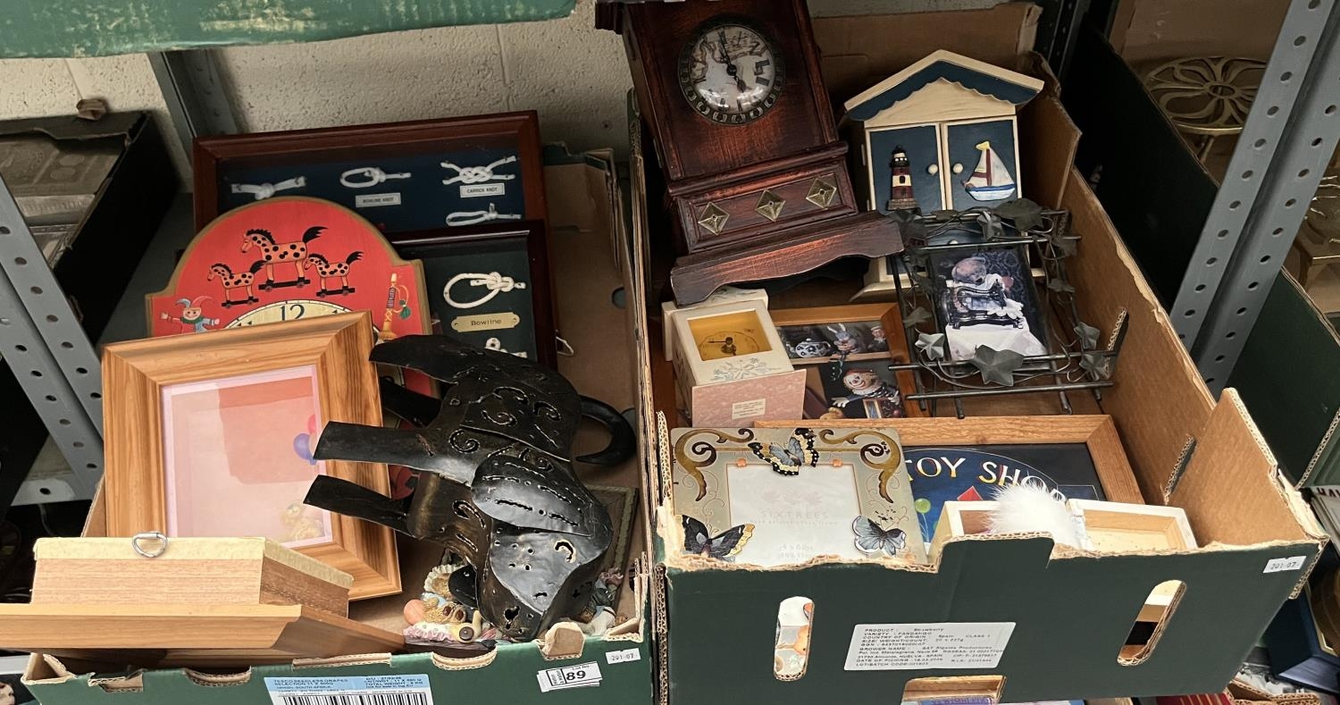 2 Boxes containing children's 'teddy bear' shadow boxes and 'toy shop' sign etc
