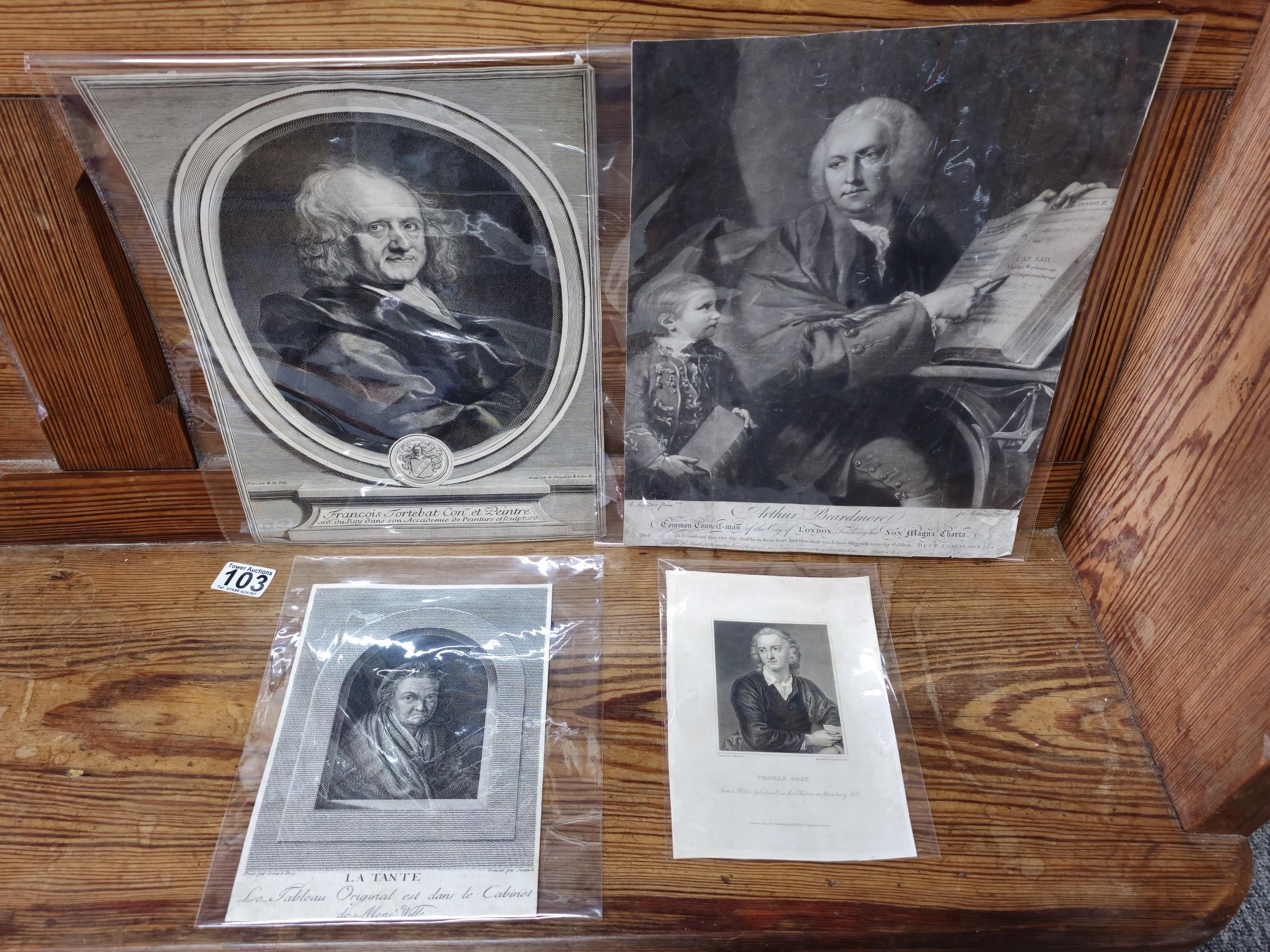 A group of four 18th-19th century portrait engravings and mezzotints, comprising