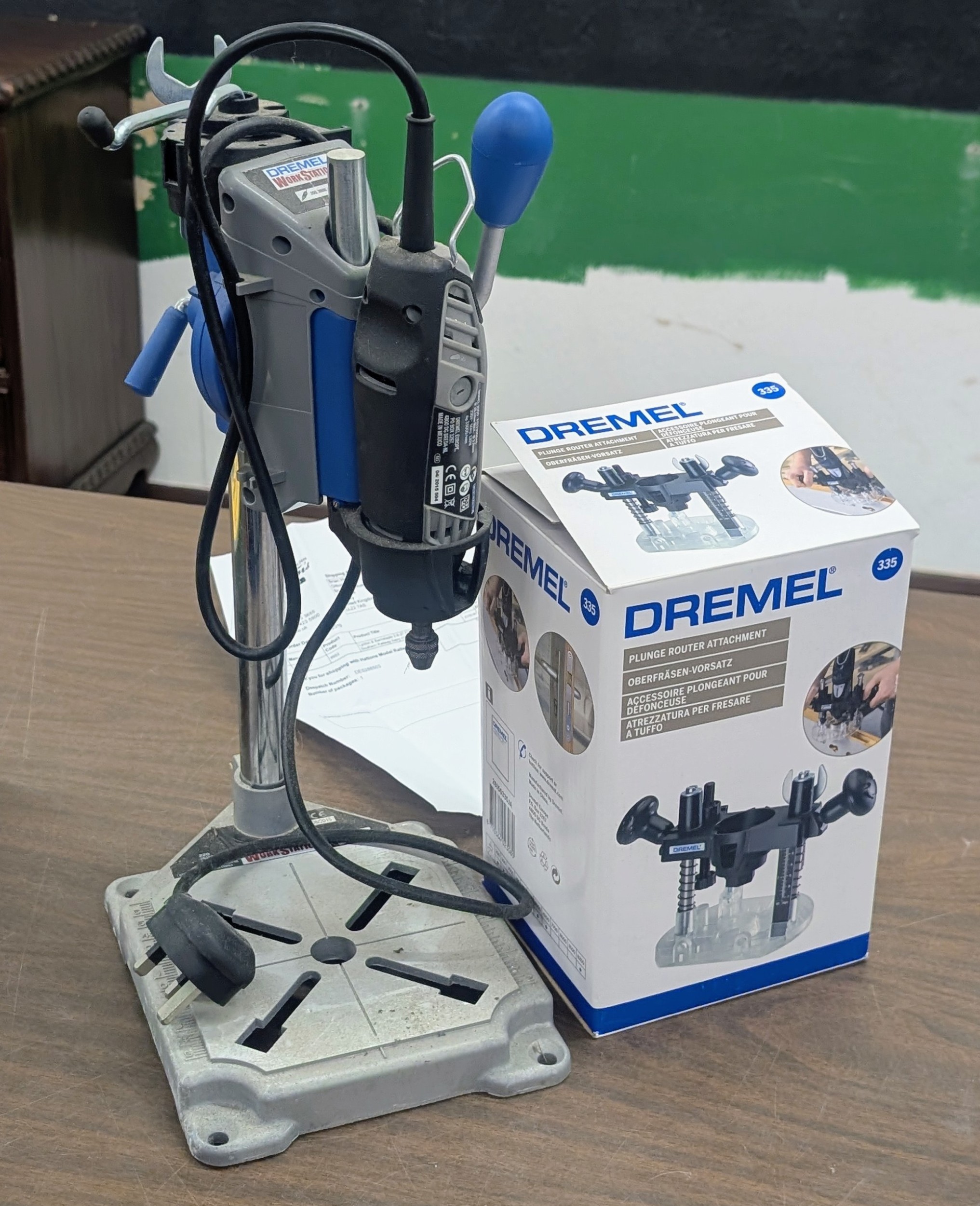 Dremel Model 3000 Rotary Tool with WorkStation 220 Drill Press Stand and 335 Plunge Router Attachment