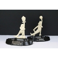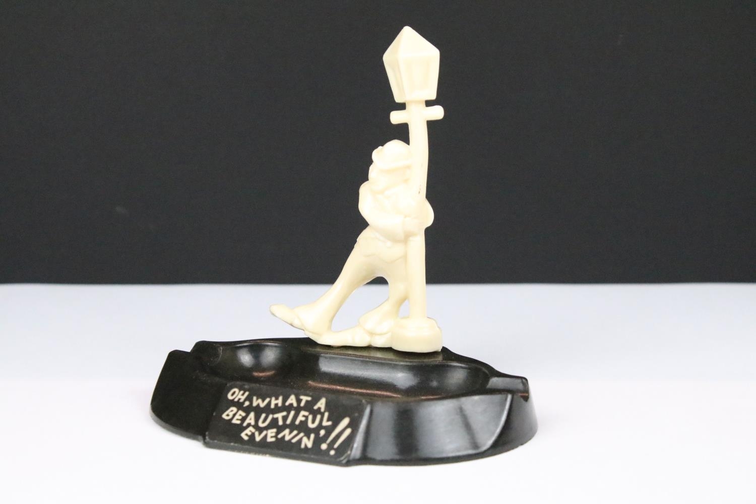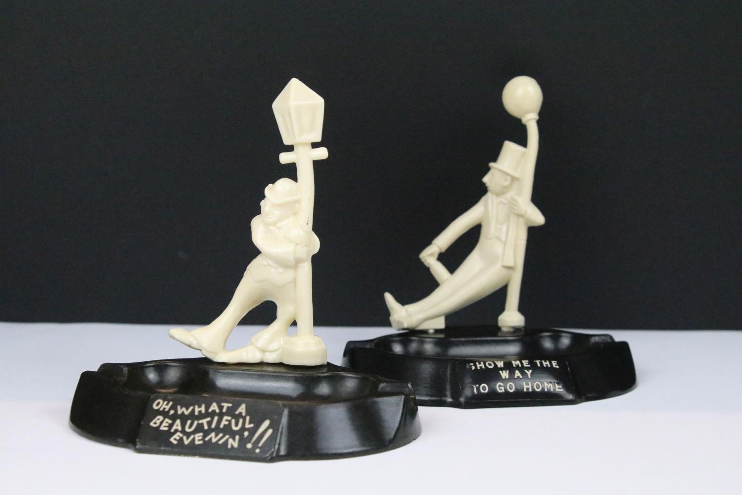 Two novelty 'Selcol' ashtrays depicting drunken men against lamposts with comical slogans.