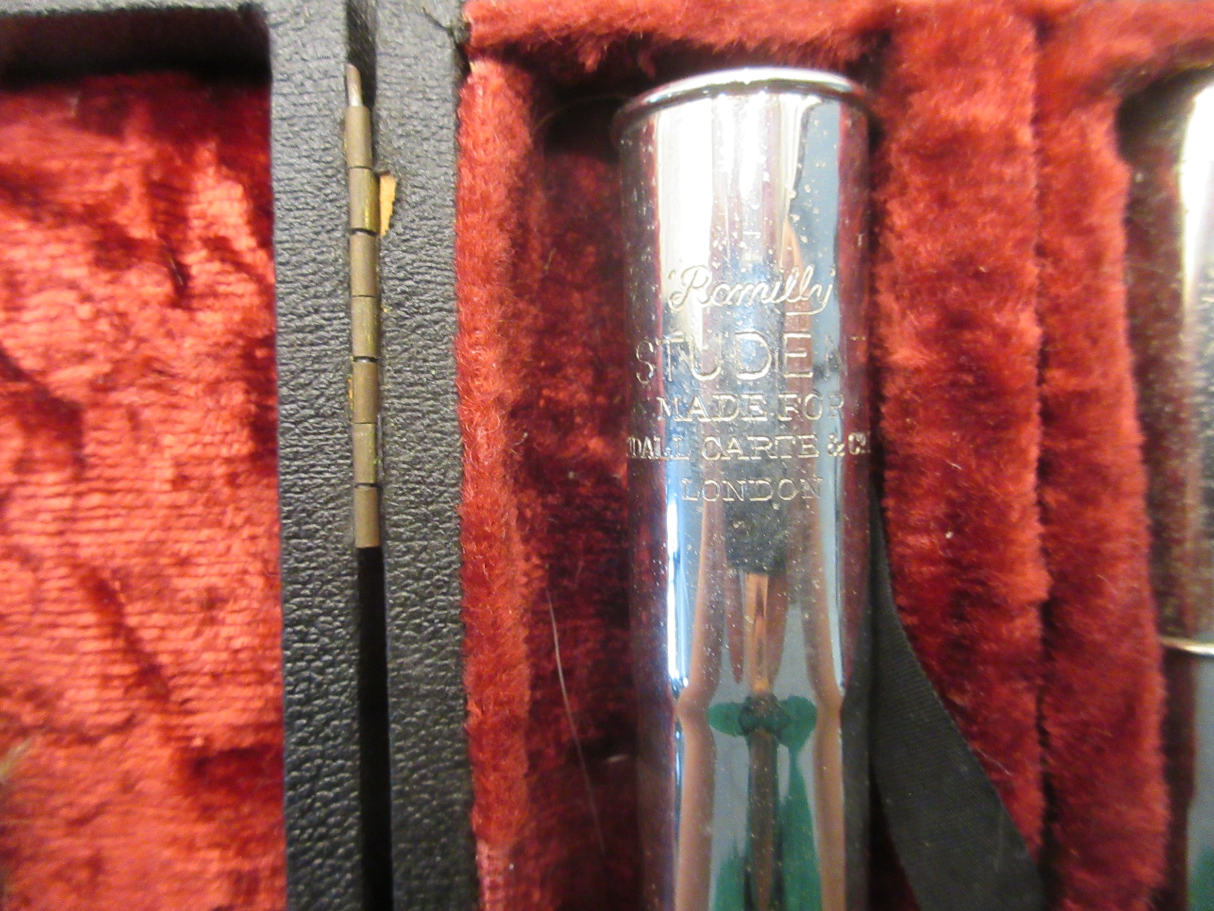 An electroplated Romilly Student flute made for Rudall Carter & Co Ltd, in fitted case