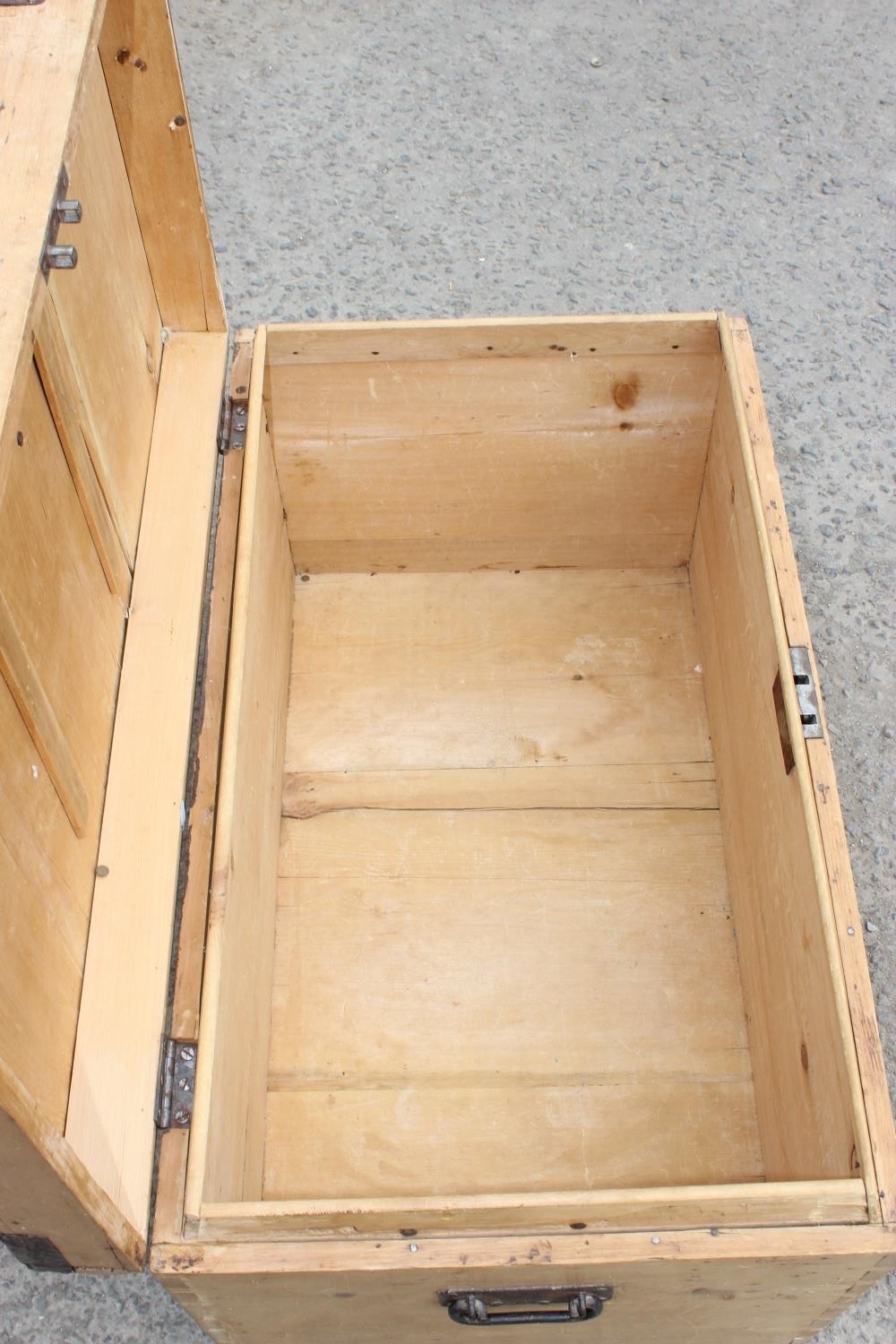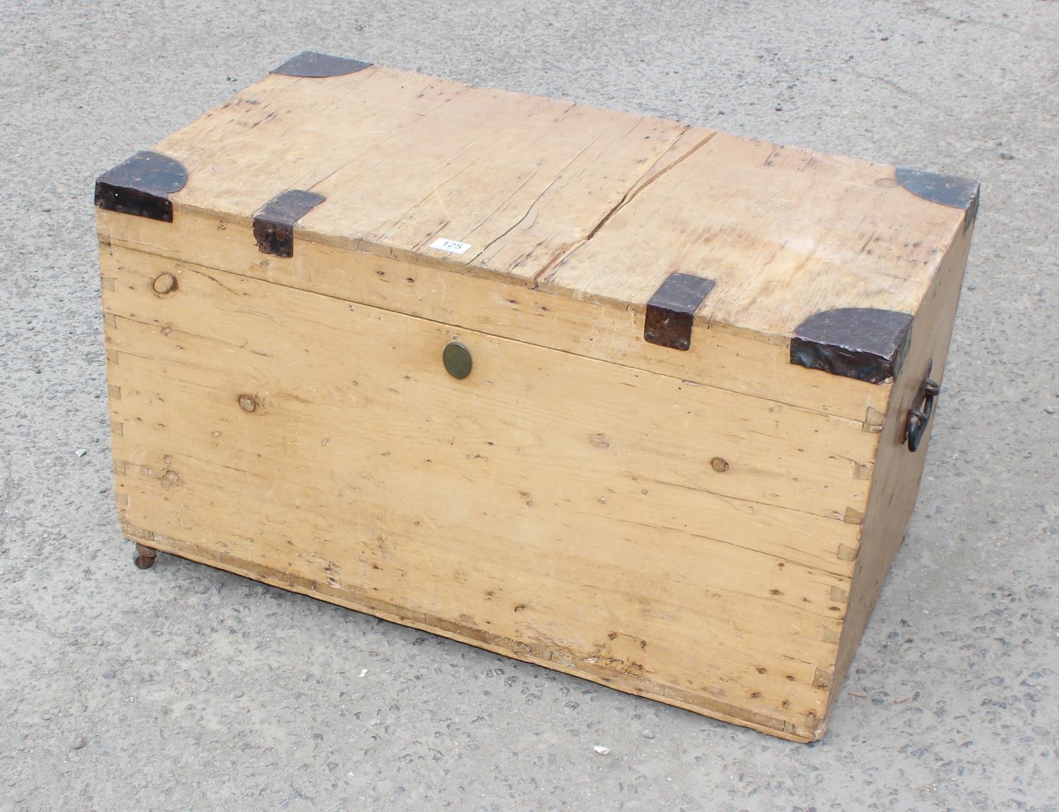 Antique pine box with metal bound corners