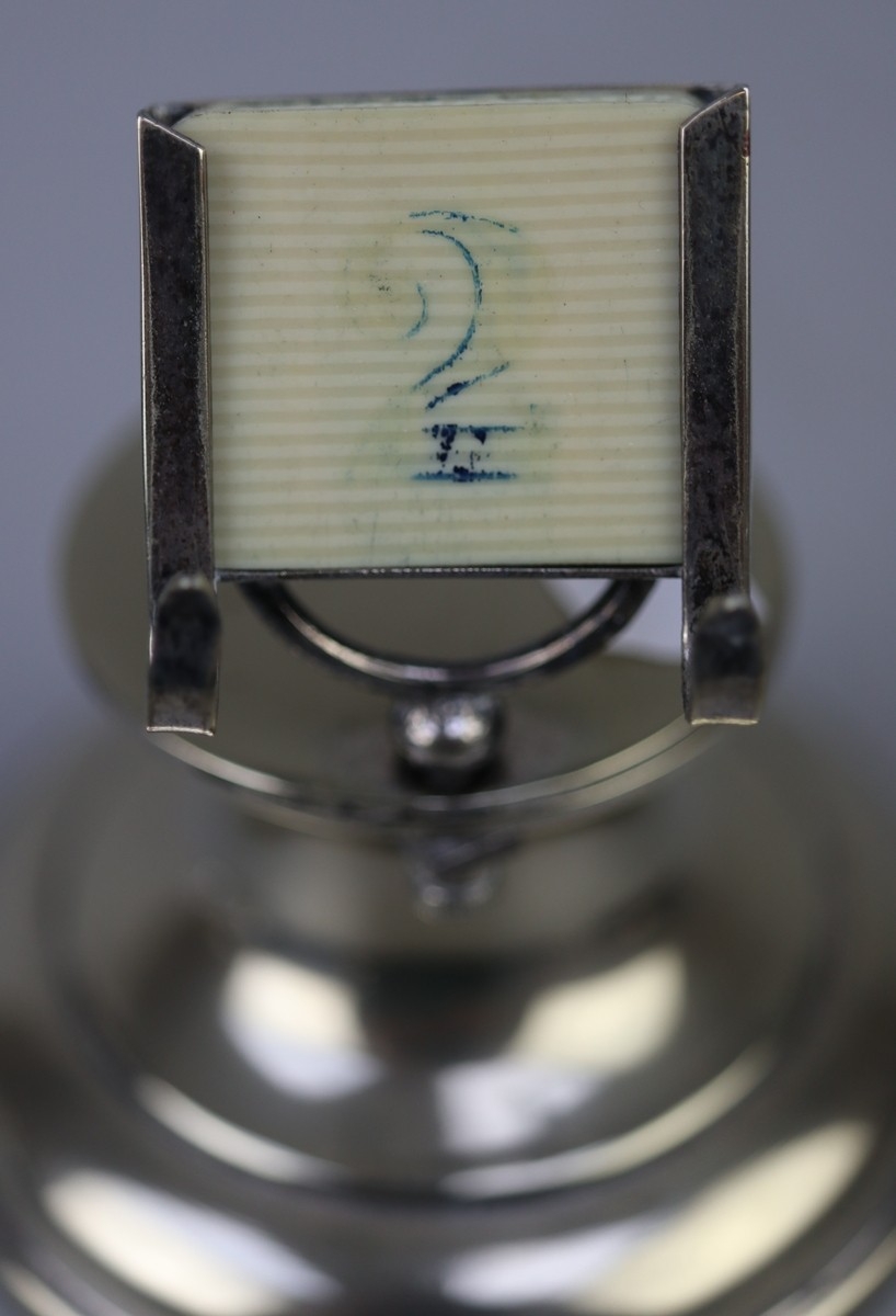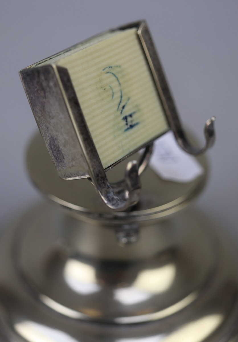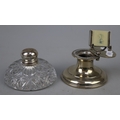 Silver plate inkwell & calendar together with a white metal topped glass inkwell