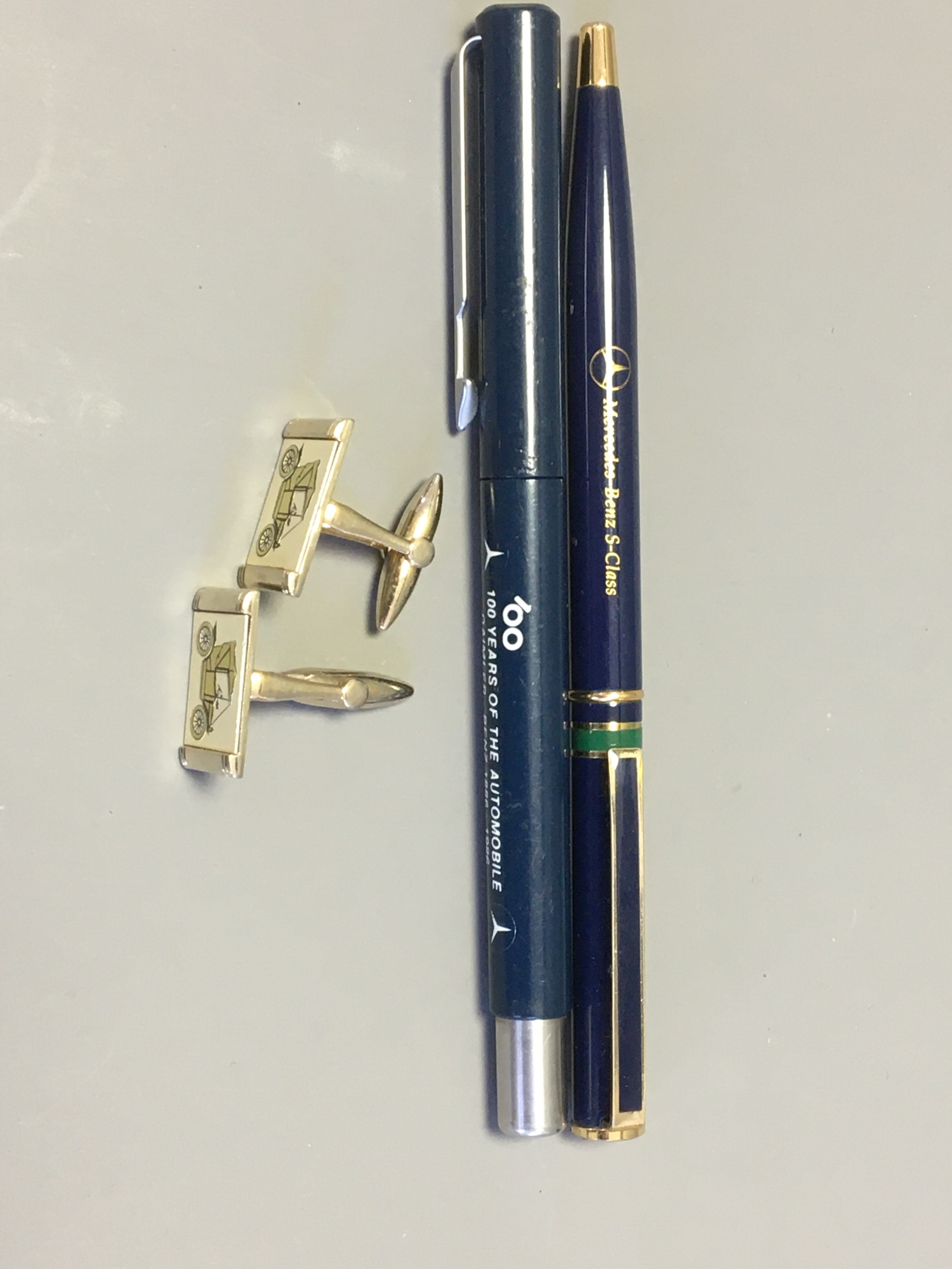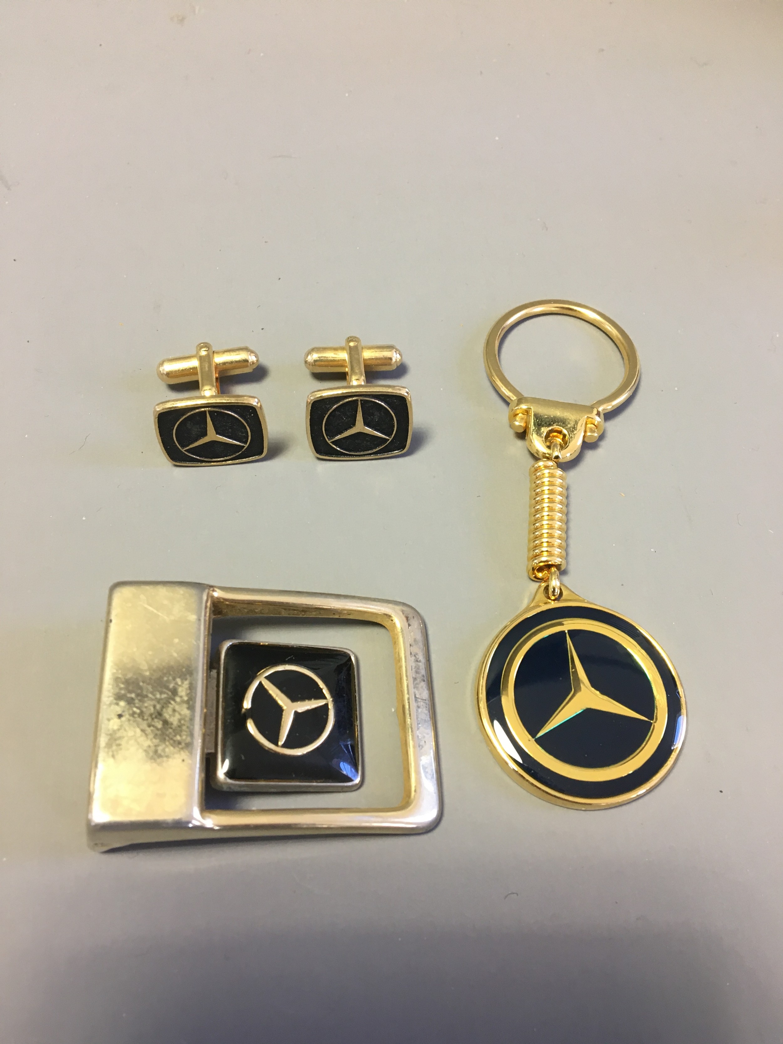 Collection of Mercedes Presentation Merchandise. Cuff Links, Belt Buckle, Keyring etc