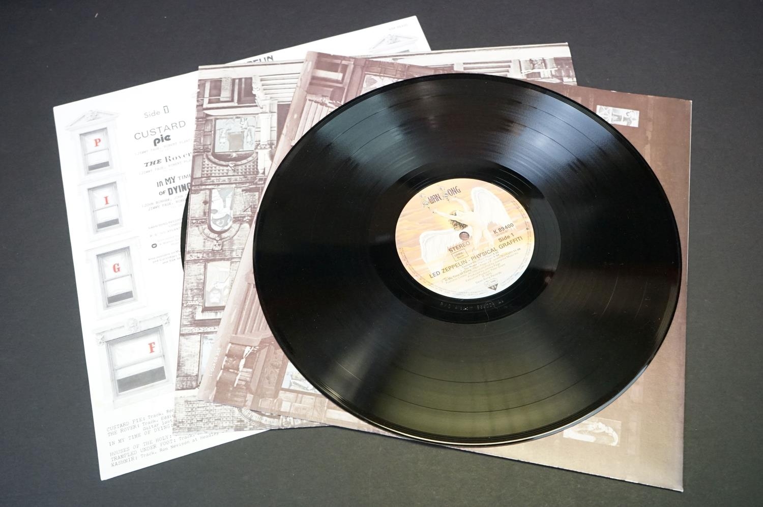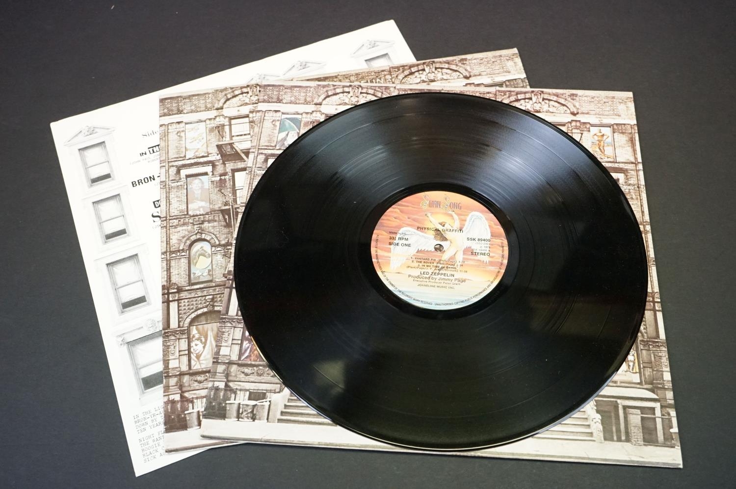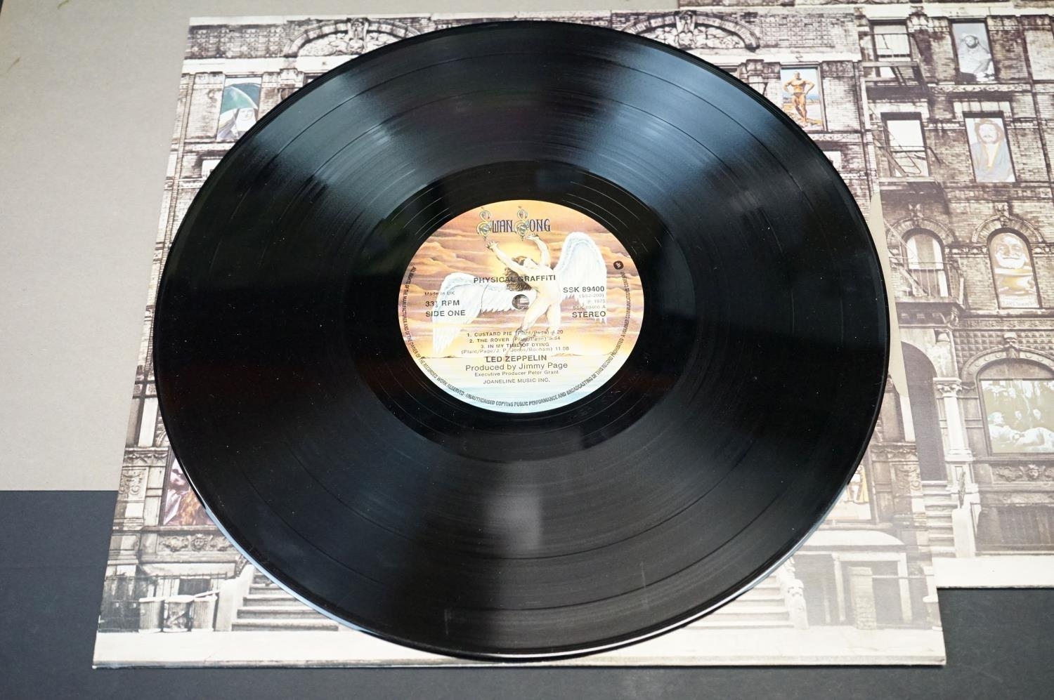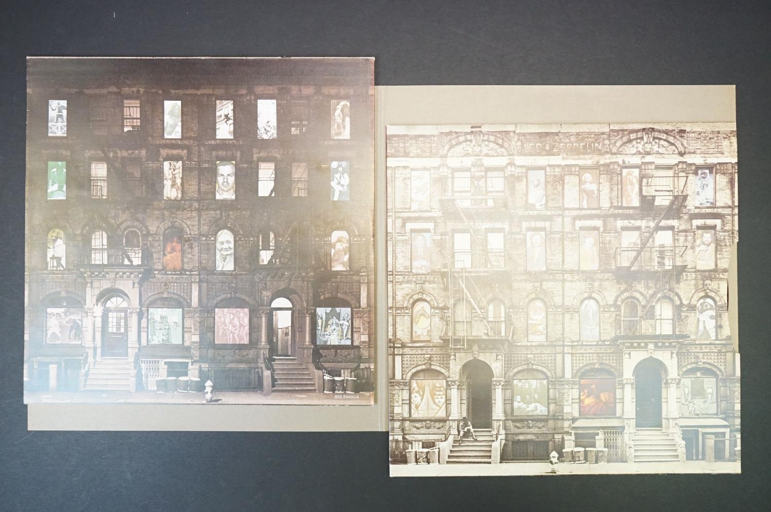 Vinyl - Led Zeppelin - Physical Graffiti 3 copies to include 1) 1st pressing with no Warner logo on rim text, A1 / B4 / C1 / D1 matrices, thick Insert, with a single fold to the bottom (SSK 89400) VG+ / VG+ / EX- inners and insert EX, 2) Warner logo on rim text, A / B / C / D matrices, thick insert (SSK 89400) VG++ / VG / VG++ inners and insert EX, 3) German Pressing A 4 / B 2 / C 2 / D 3 matrices, thin Light Coloured Printed Inners and Thin white paper folded insert (SSK 89 400) EX / EX / EX inners and insert EX